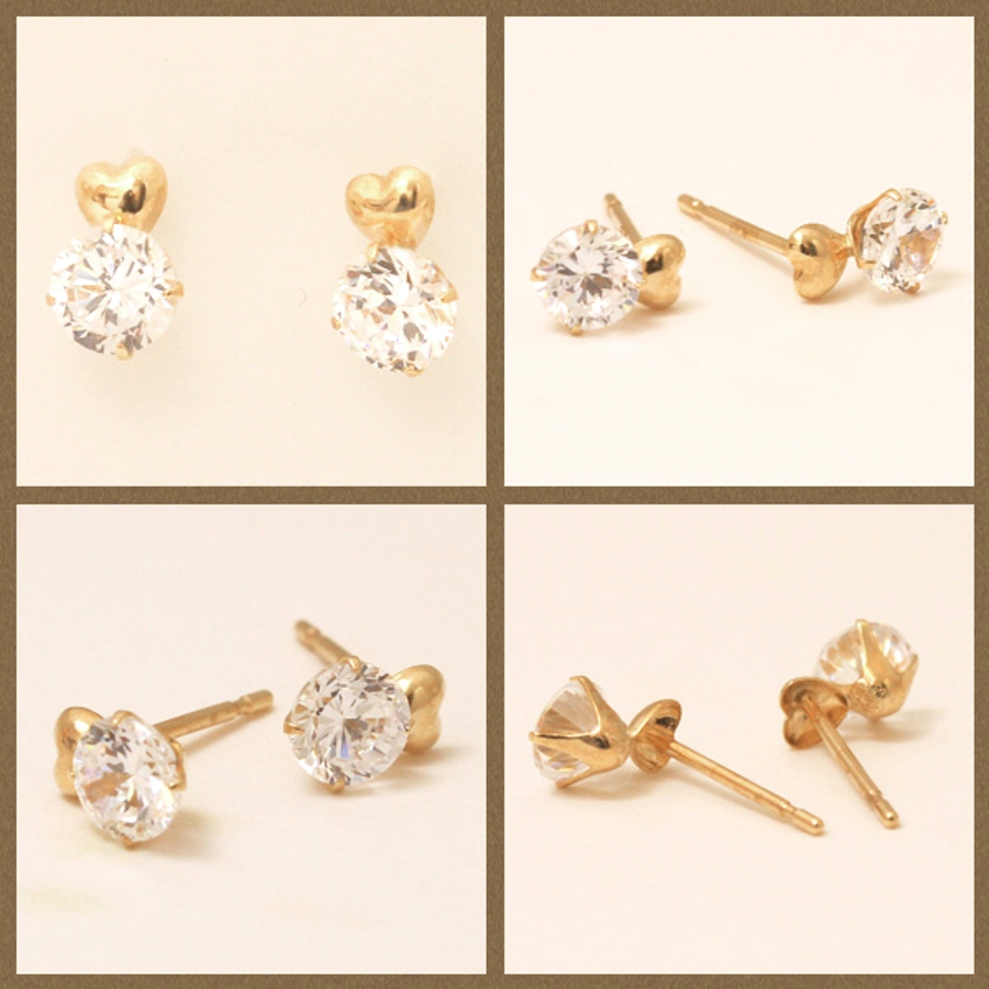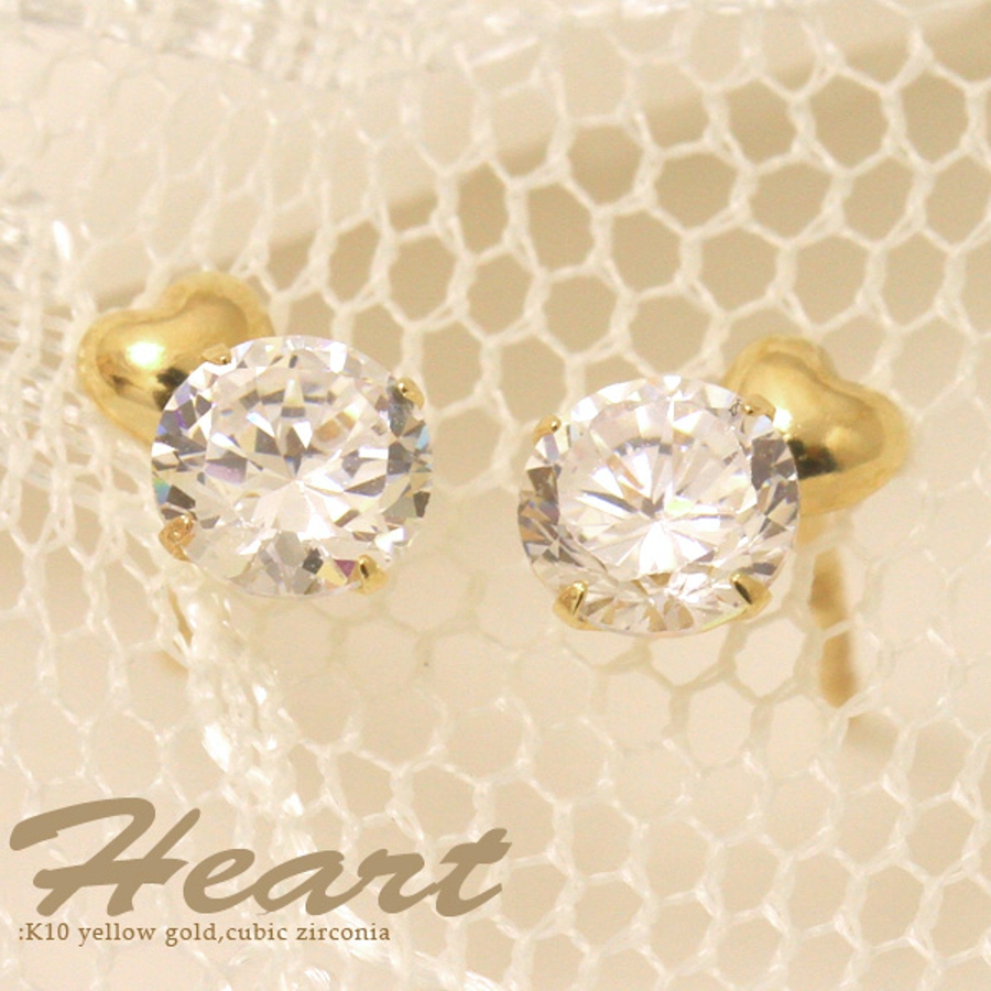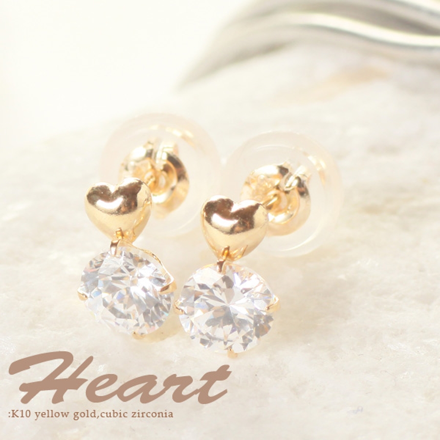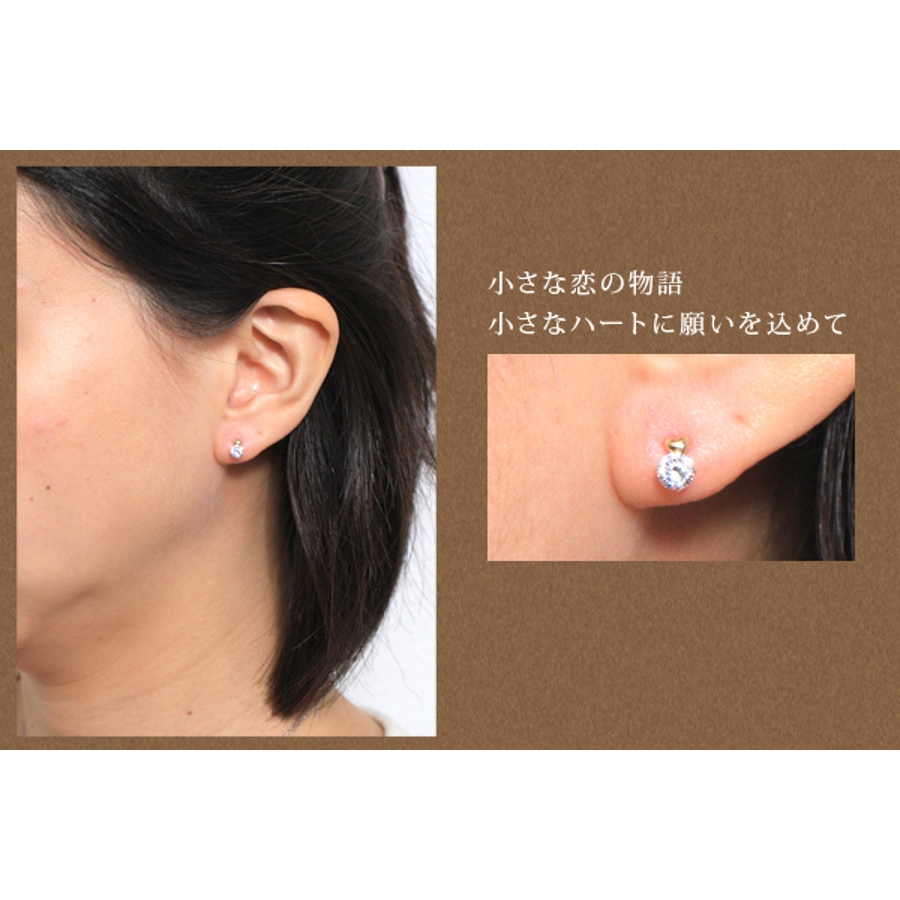 小さなハートの下に1粒のジルコニアが輝きを放つピアス。