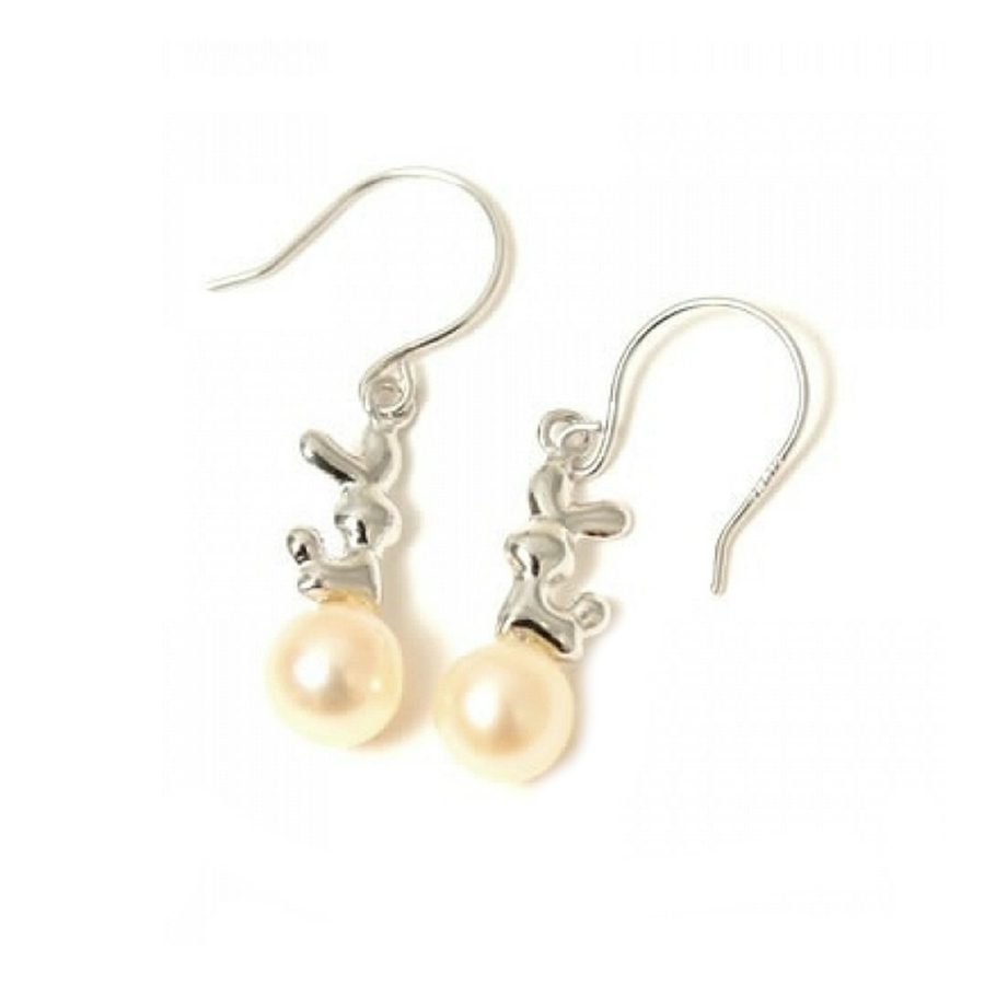 フックタイプのポストにぷっくりしたウサギさんが満月のようなパールに乗った、
