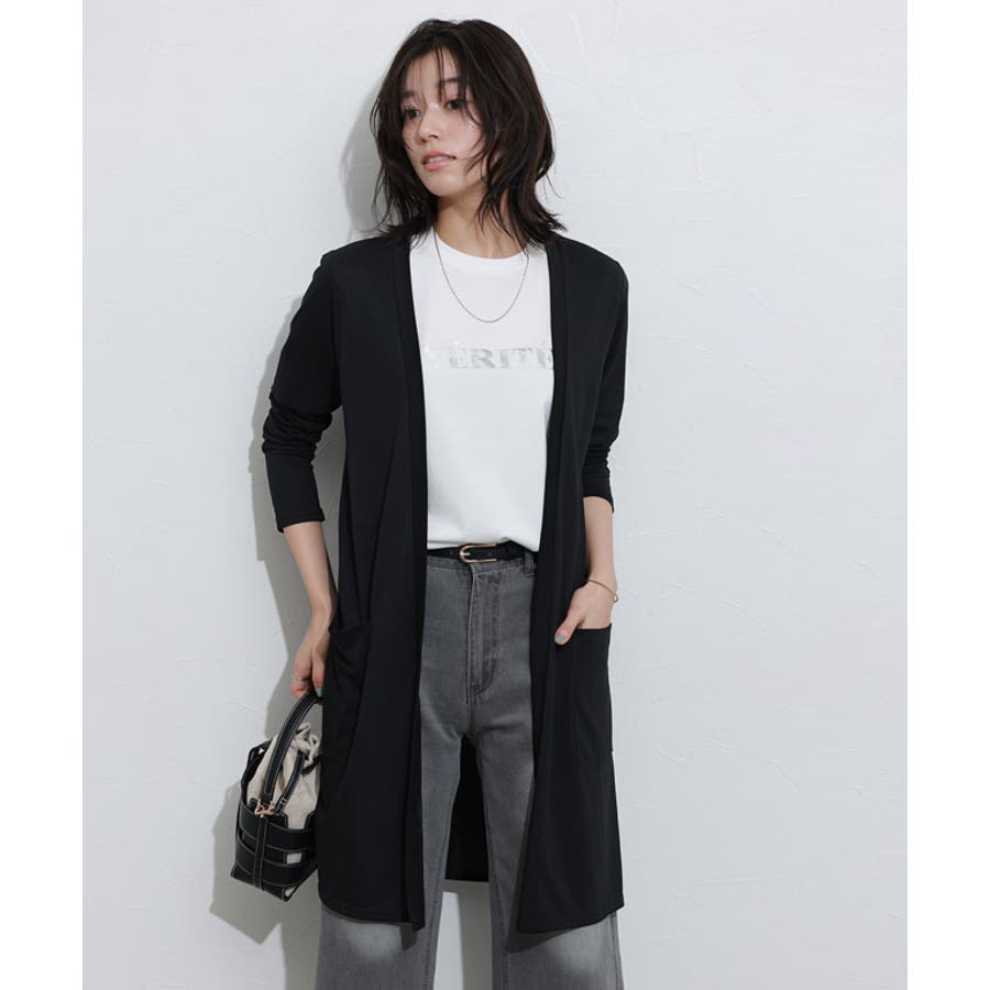 ロング丈+サイドに施したスリットによりすっきりとシャープな印象に。気になるヒップやお腹周りの体型カバーとしても優秀です。洗練されたシンプルなデザインはボトムスを選ばず幅広いシーンにぴったり。さっと羽織るだけで抜け感をプラスします。両サイドポケット付きで機能性も良く、デイリー使いにぴったりの一枚です。