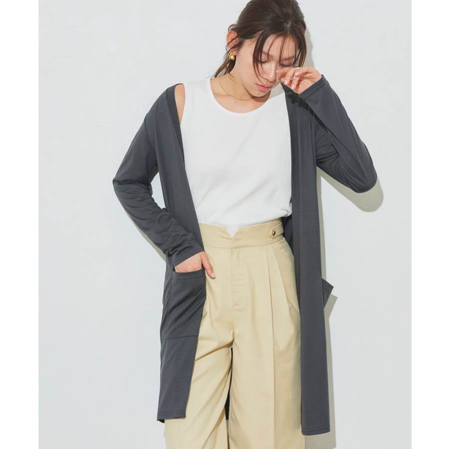 UV-cut裾スリット入り ロングカーディガン トッパー カーディガン カーデ