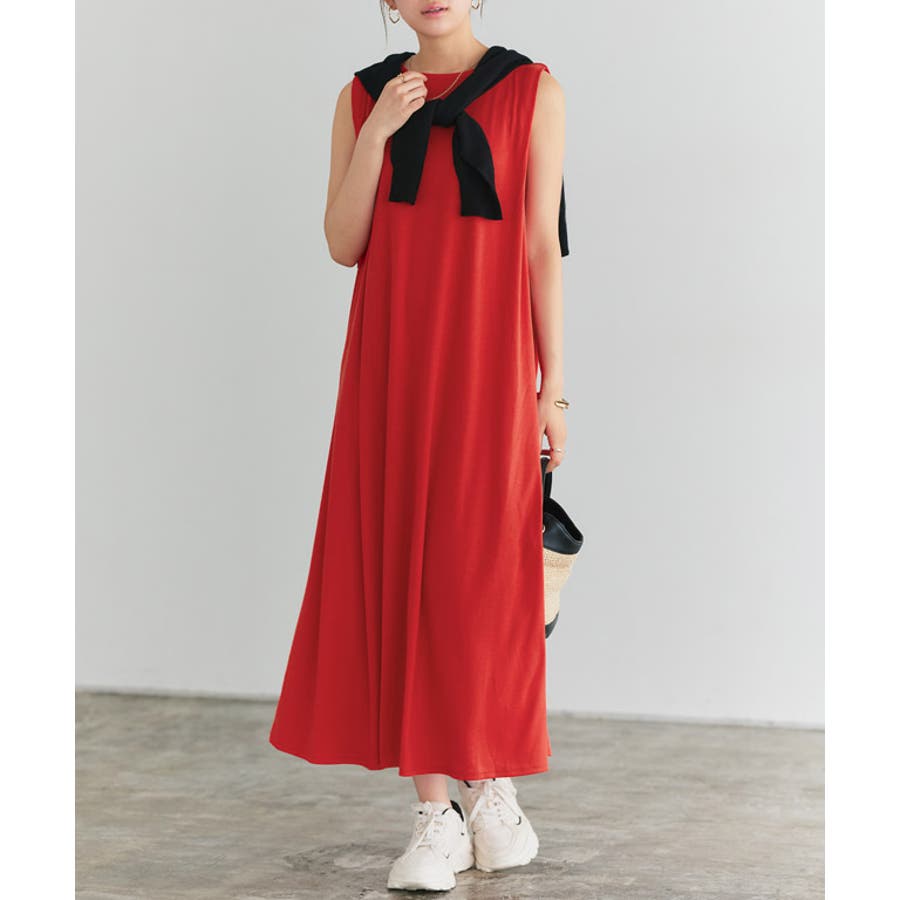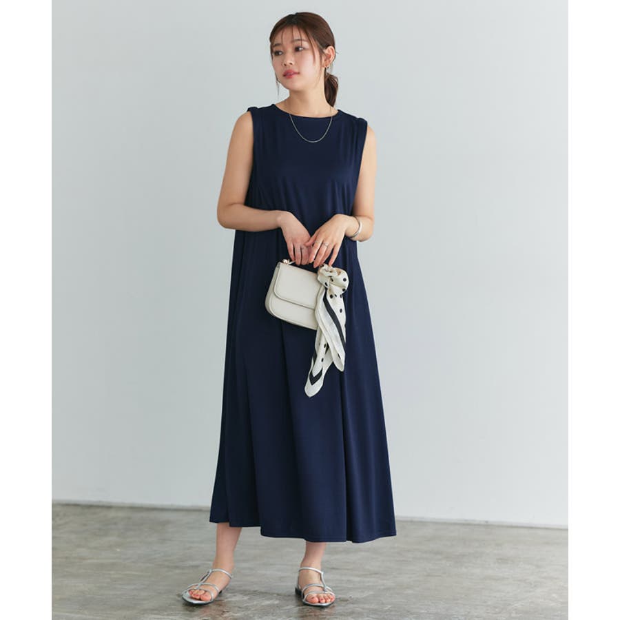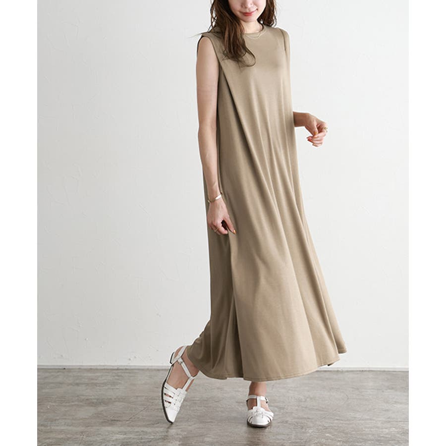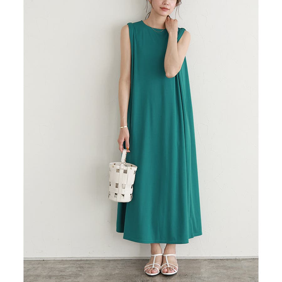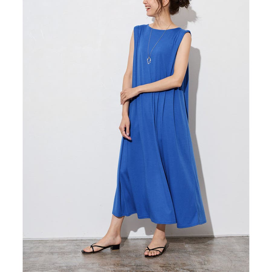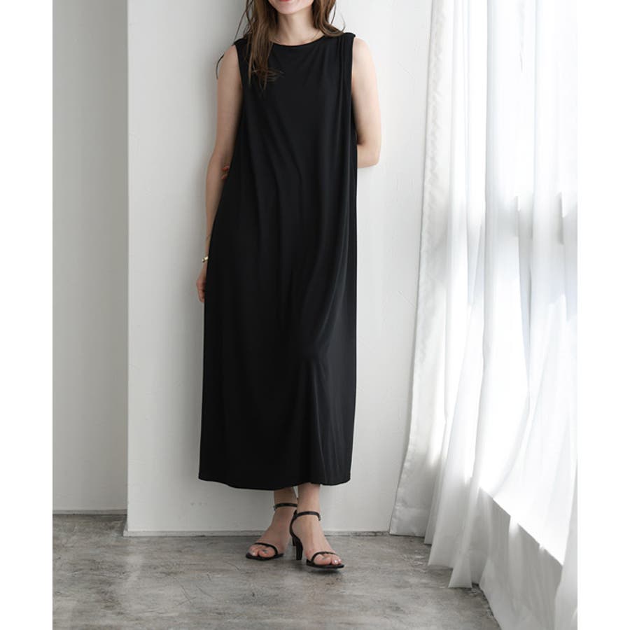 レーヨン混素材で、さらりと滑らかな肌触りが素肌に心地良いワンピース。伸縮性にも優れているため、ストレスフリーに着用して頂けます。