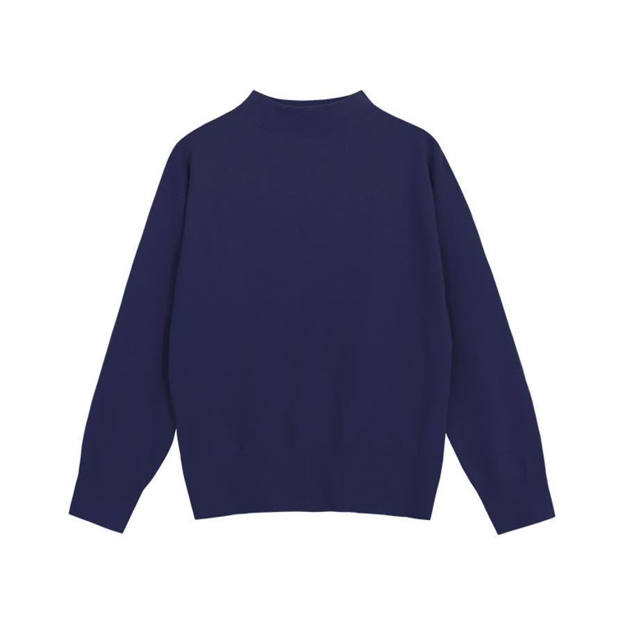 身頃はシンプルなデザインなので、様々なスタイリングに着回しやすい一枚。程よくゆとりのあるハイネックデザインがこなれ感のある印象に導きます。