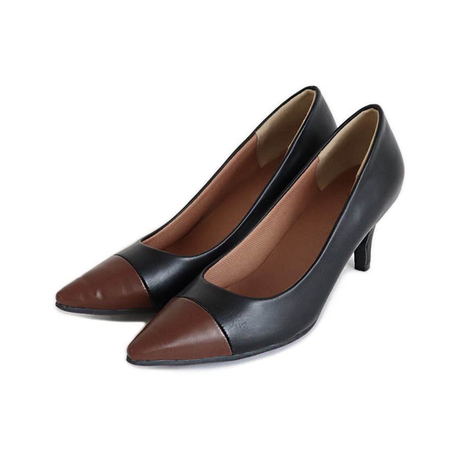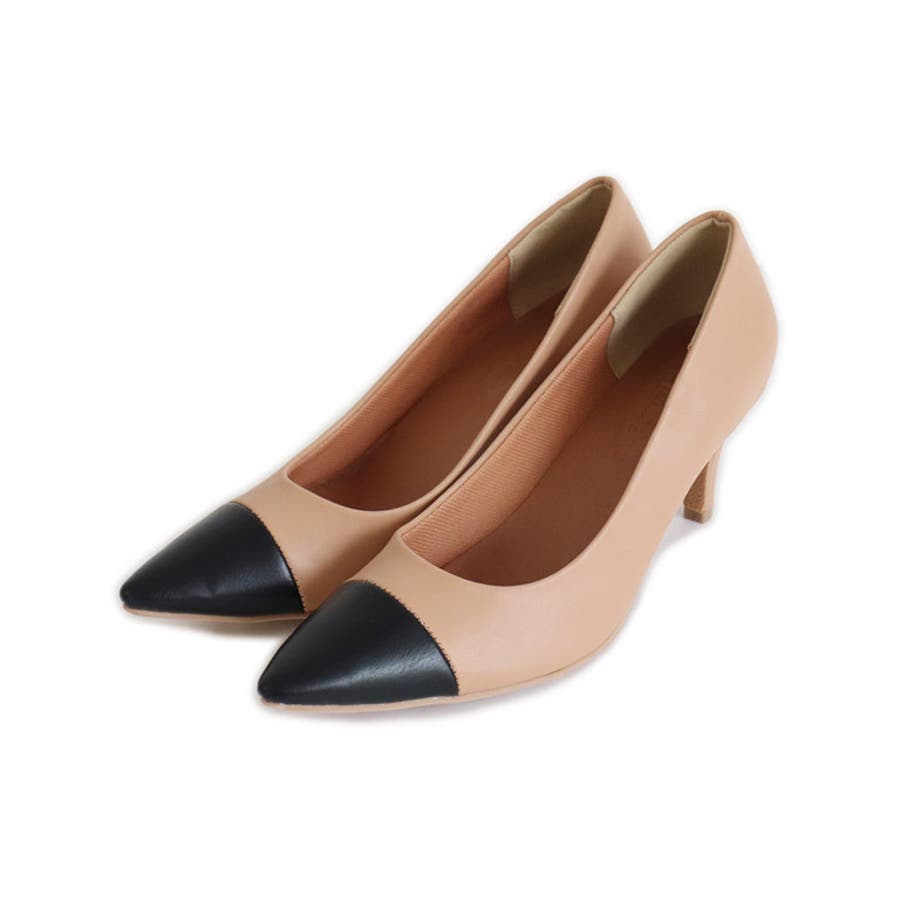 シンプルなデザインのパンプスに配色を施すことでスタイリングにアクセントをプラスし、こなれ感を演出。ポインテッドトゥが女性らしく、デイリー使いしやすい一足です。