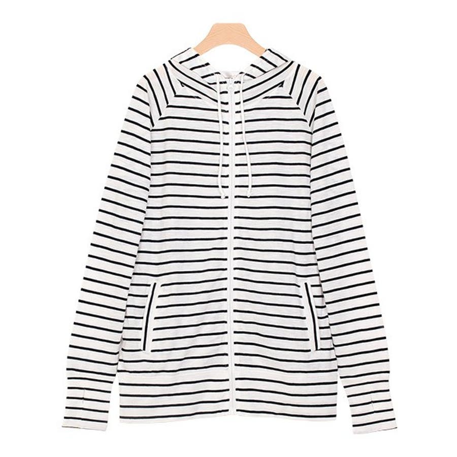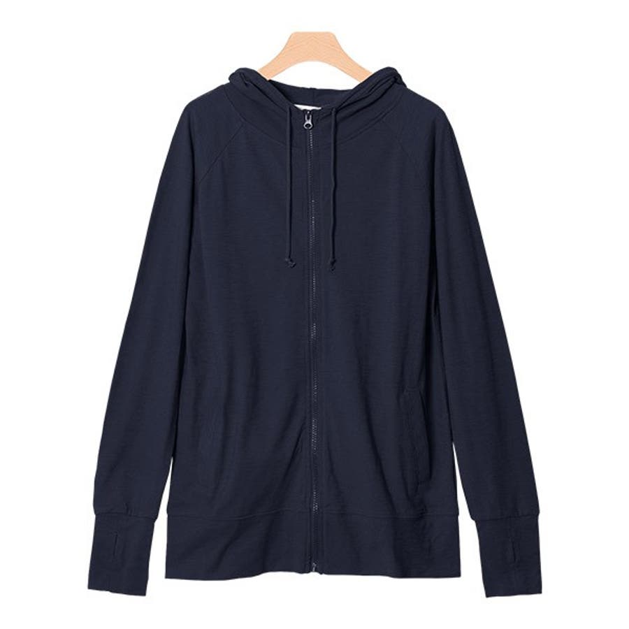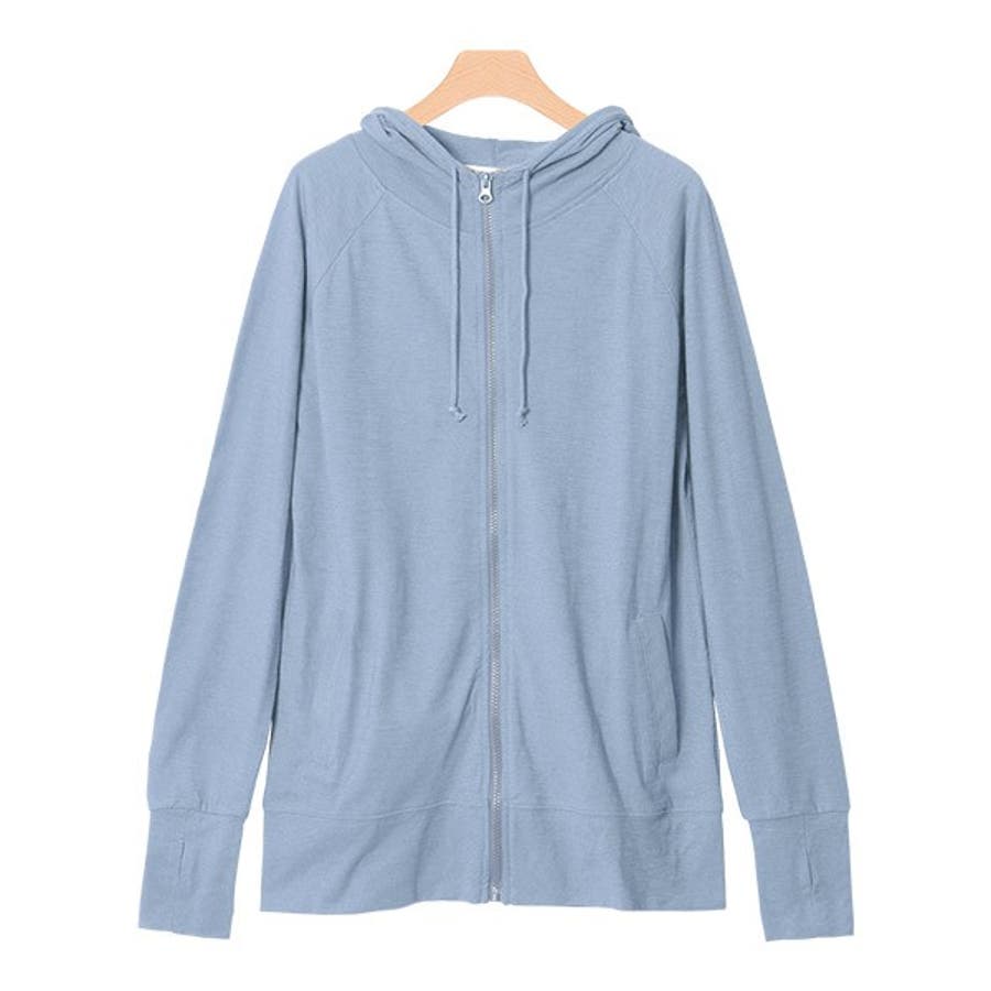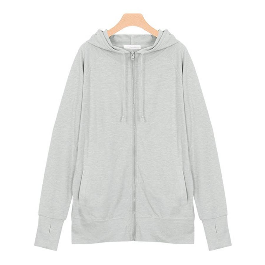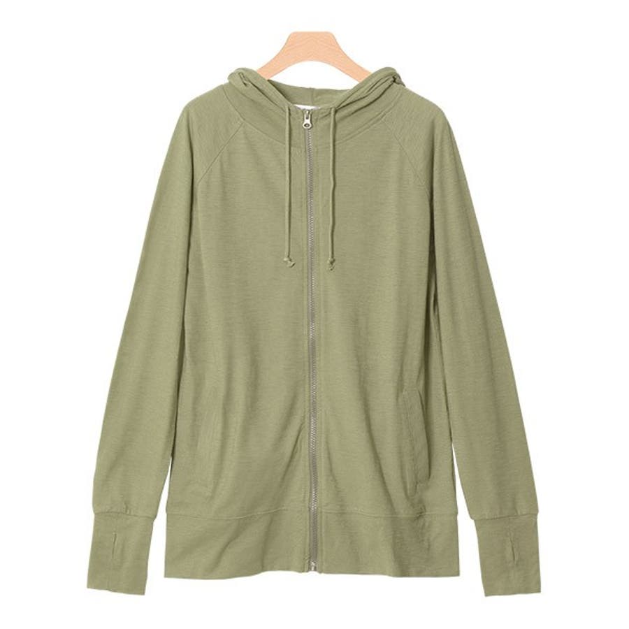 2typeから選べるスラブパーカーフードジップパーカー 羽織 ロング UV