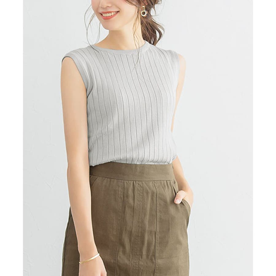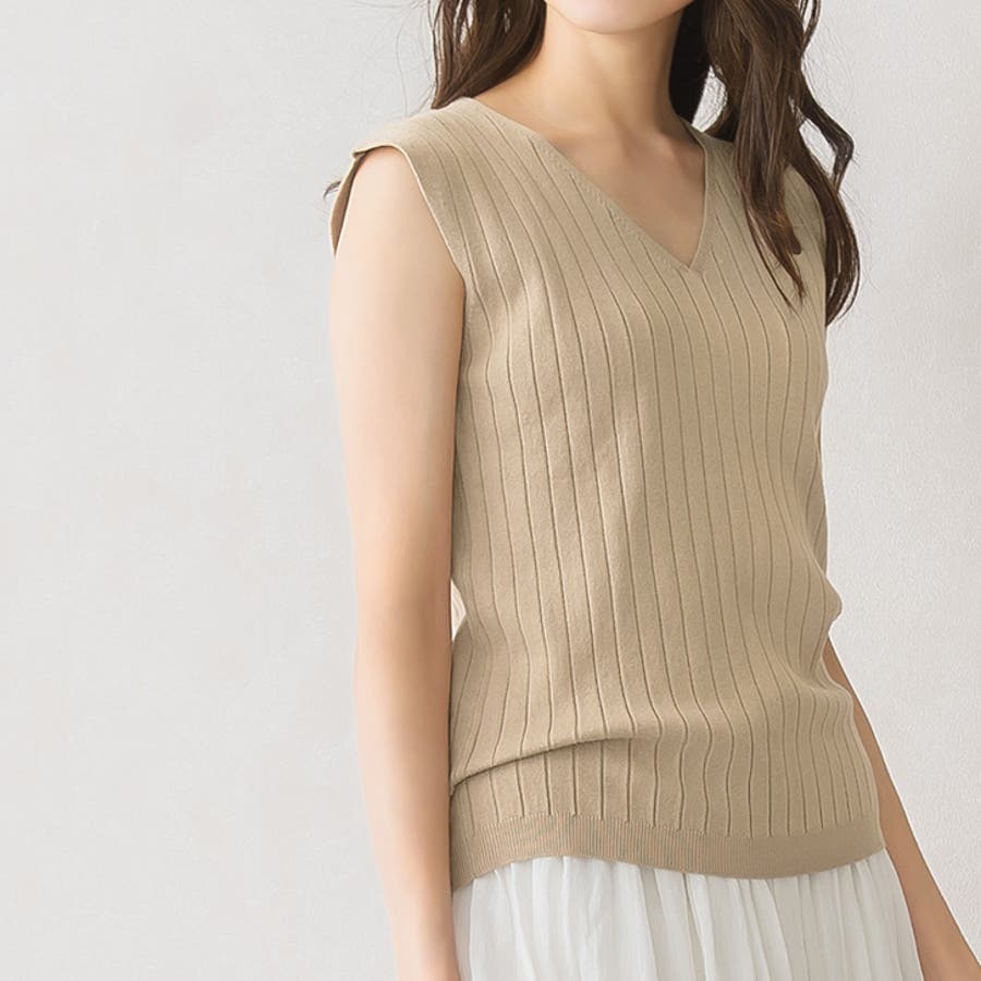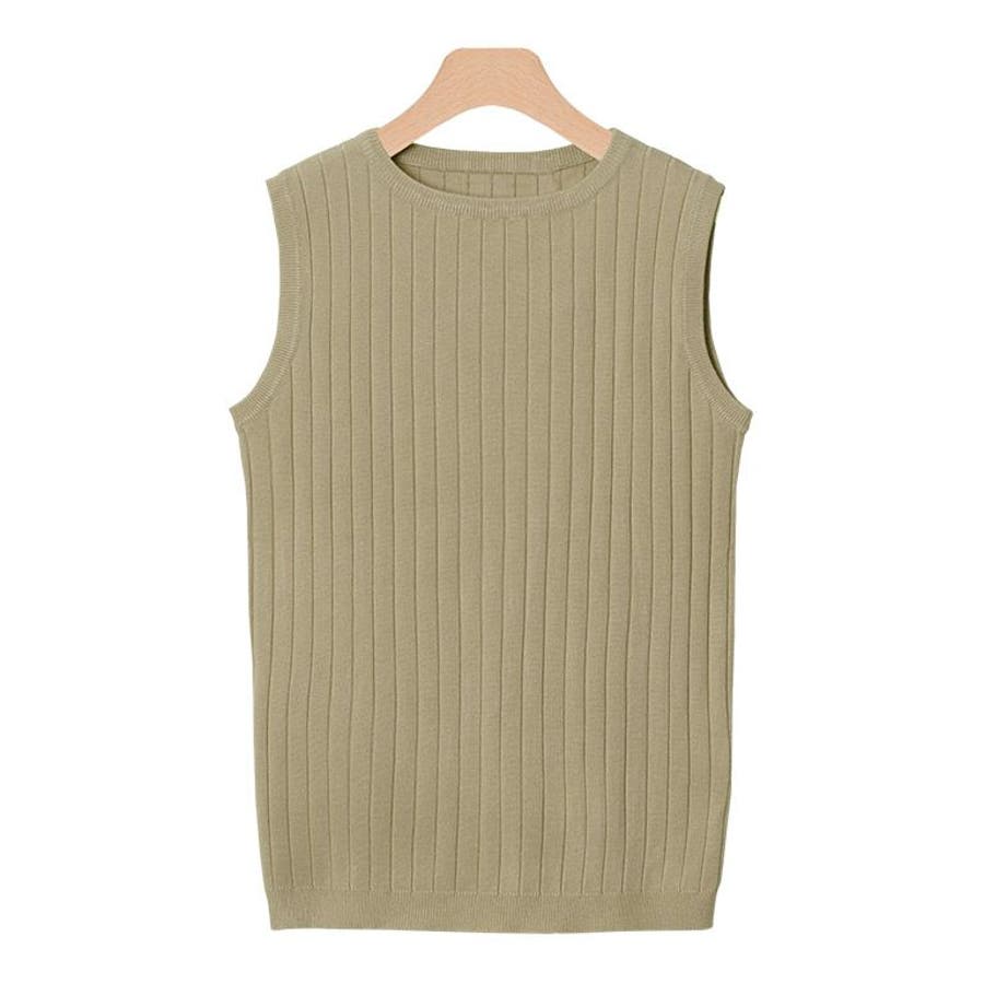 選べるノースリーブリブニットニット トップス リブ ノースリ Vネック クルー