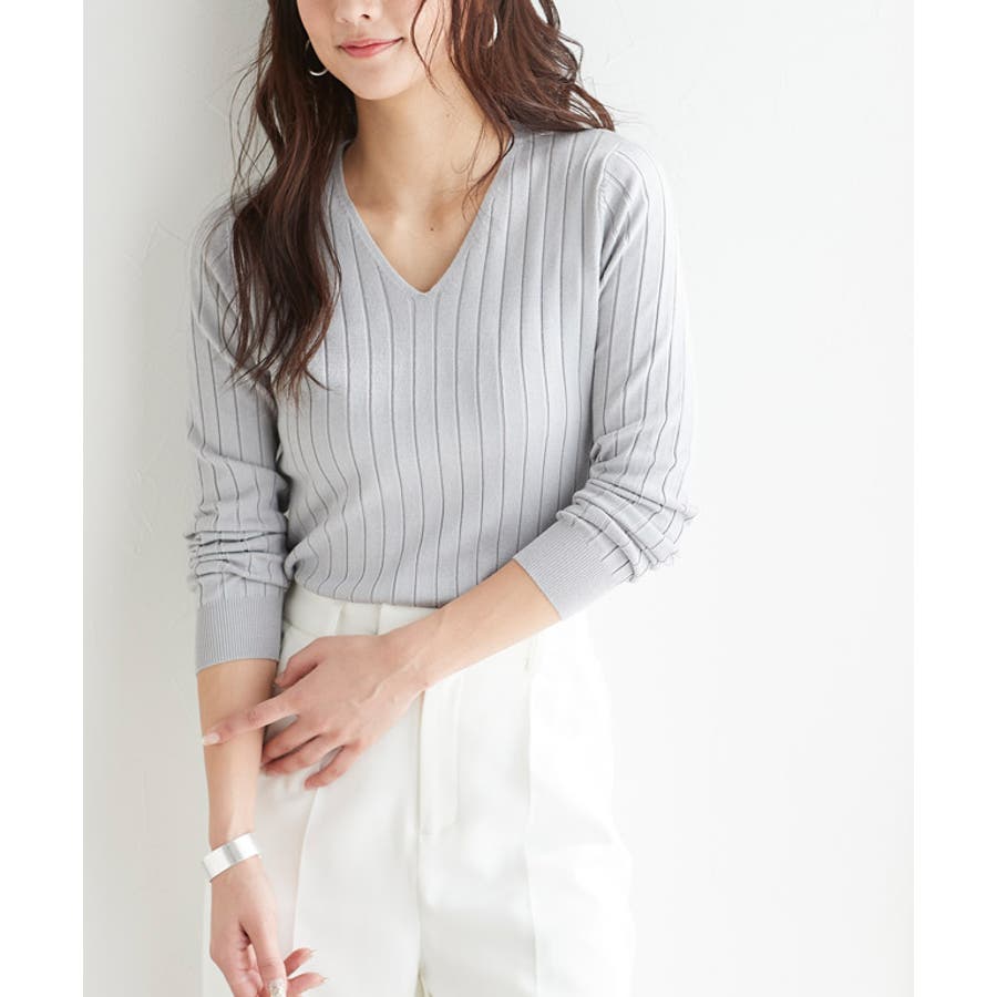 Vネックデザインは、程良く開いた首元がデコルテを綺麗に見せます。ネックラインは総針仕様になっているため、丁寧に仕立てられ上品で高級感ある印象に。ウエストが細見えする程良くシェイプされたラインなので、女性らしさを感じるシルエットが魅力です。