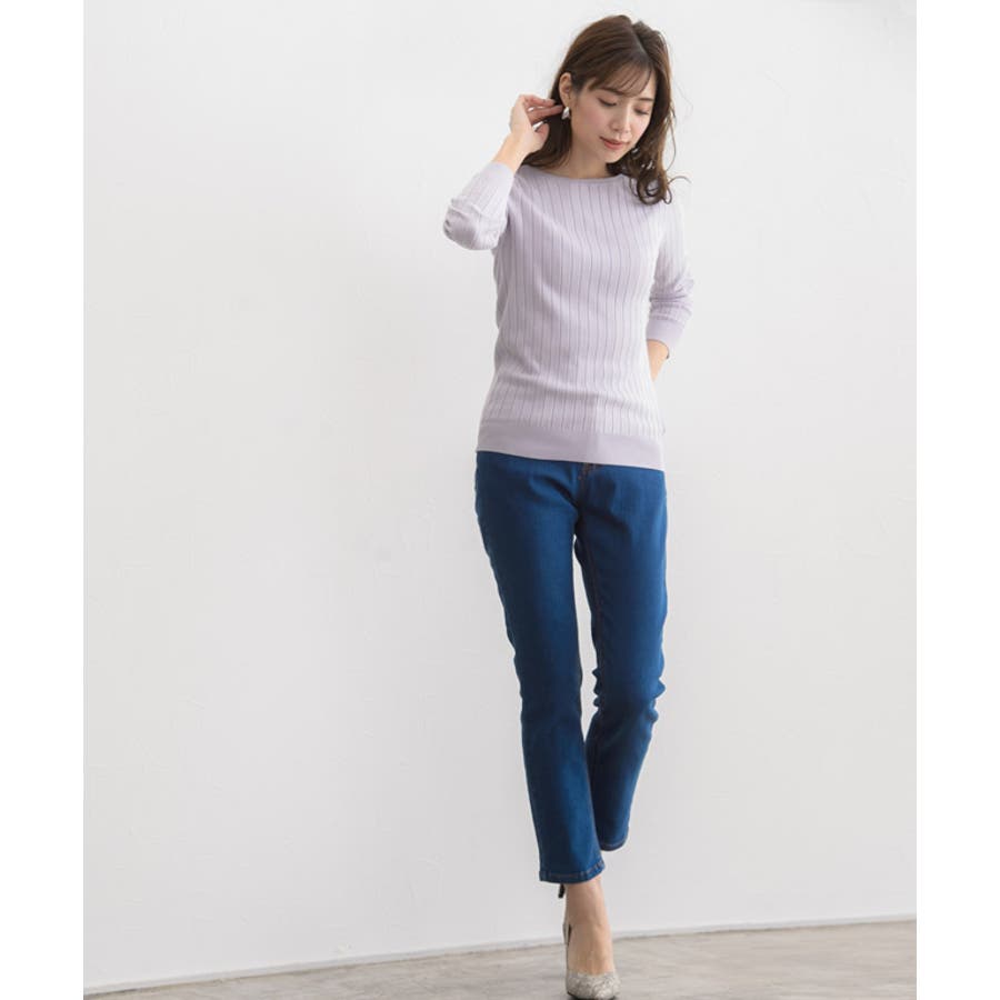 ボートネックデザインは、緩やかな曲線が鎖骨部分を綺麗に見せます。ネックラインは切り替えで細リブにすることで、きちんと感のある大人の装いに。すとんと落ちるような程良い身幅はリラックス感がありつつも、カジュアルになりすぎないシルエット。体のラインを拾いにくいのも嬉しいポイントです。