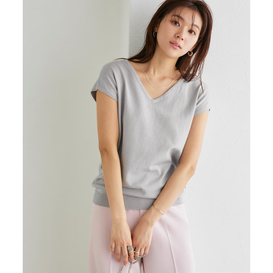 アイスラベンダーグレー | ネックが選べる フレンチスリーブニット フレンチスリーブ | Pierrot