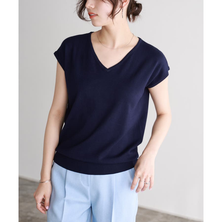 ネイビー | ネックが選べる フレンチスリーブニット フレンチスリーブ | Pierrot