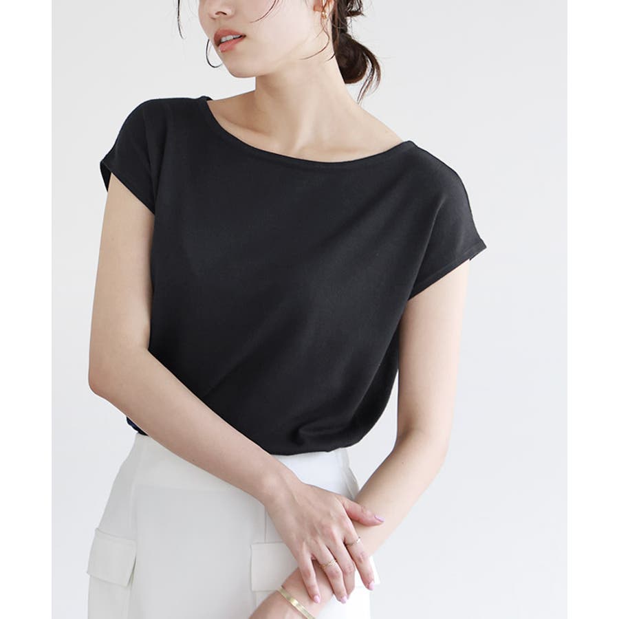 ブラック | ネックが選べる フレンチスリーブニット フレンチスリーブ | Pierrot