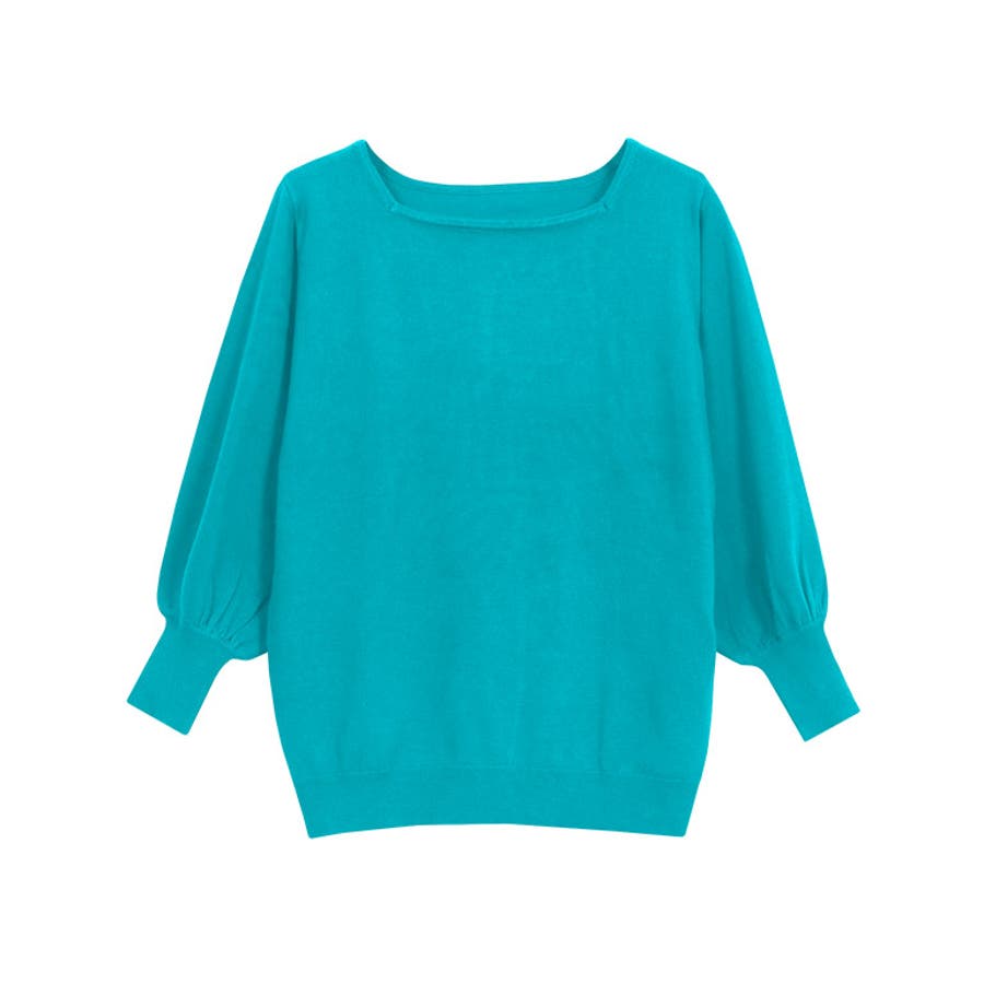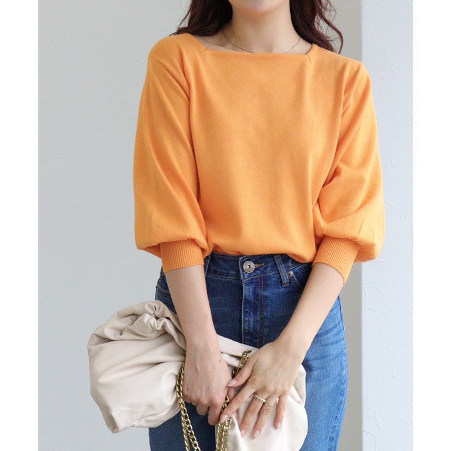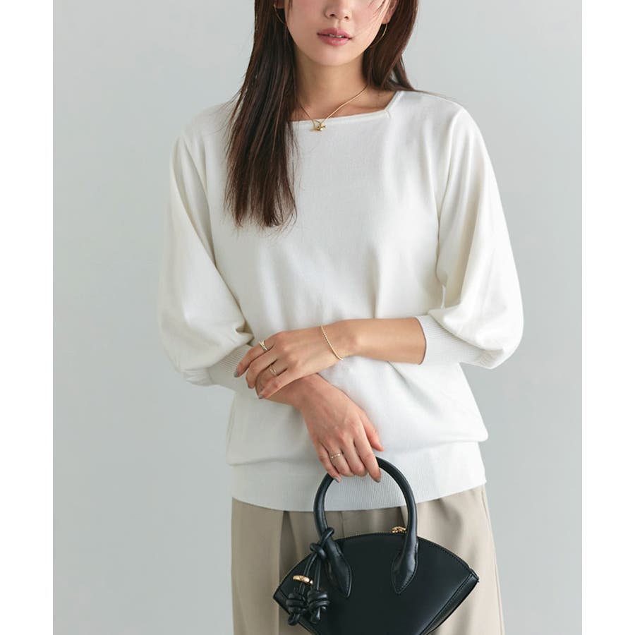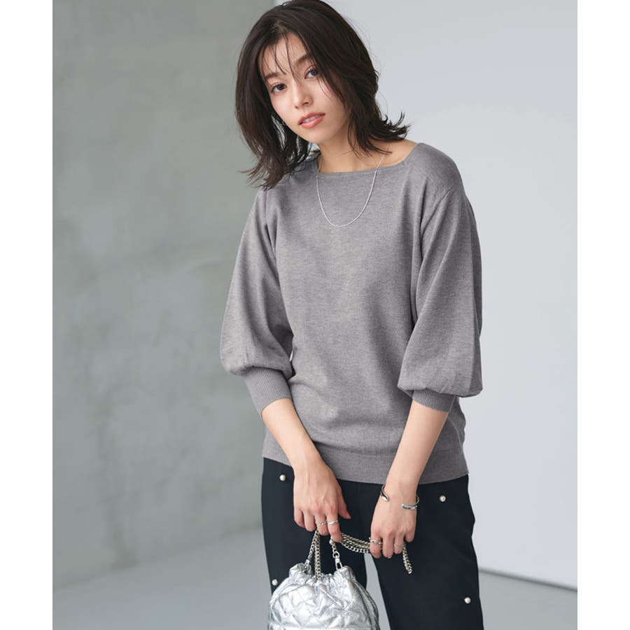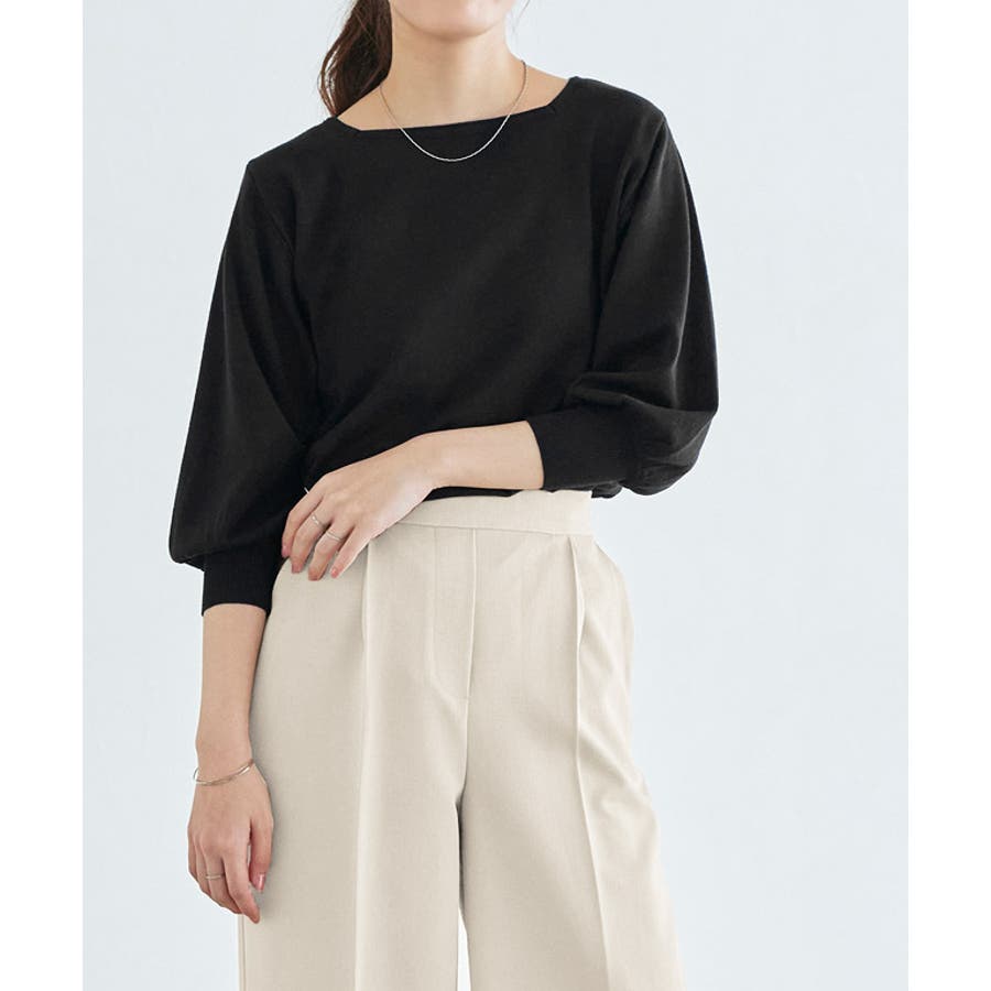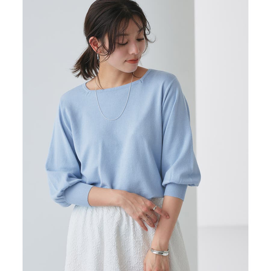 バルーンスリーブとシンプルな身頃で、華奢見えするメリハリあるシルエットに。ネックラインは上品な開きのスクエアネックとボートネックの2type。袖は7分丈なので重くなりすぎず、少したくし上げることでボリューム感もプラスします。