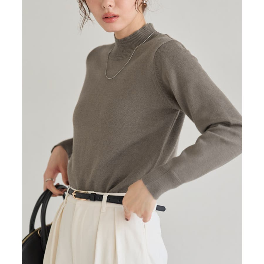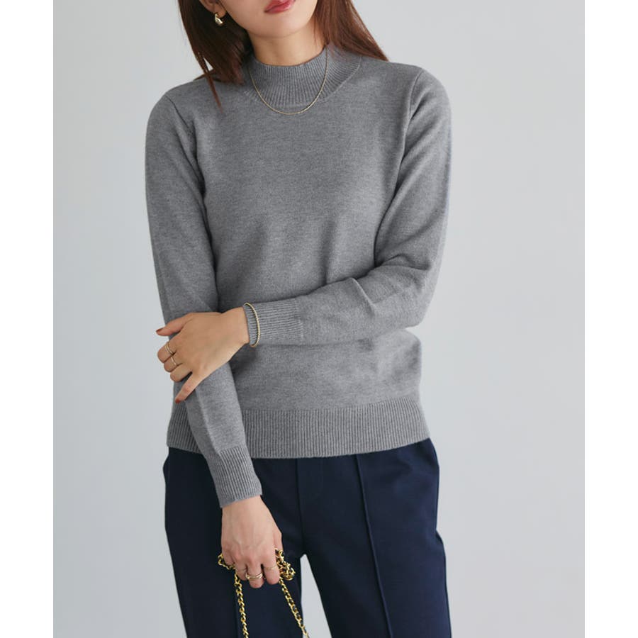 ゆとりを持たせたサイズ感が体のラインを拾いにくく、シンプルなデザインですが少しルーズでこなれた雰囲気に仕上げてくれます。首に沿ったハイネックデザインが上品ですっきり見えし、インナーとしても使いやすい一枚に。