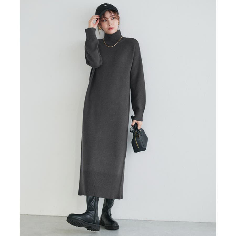 もっちりカシミヤタッチハイネックロングニットワンピース ニットワンピ