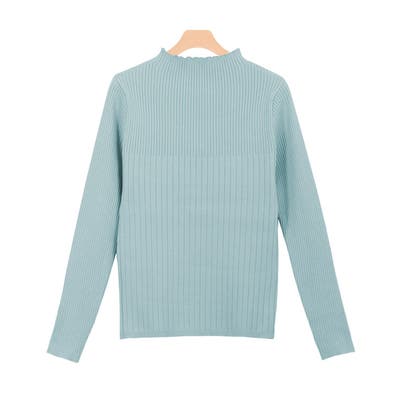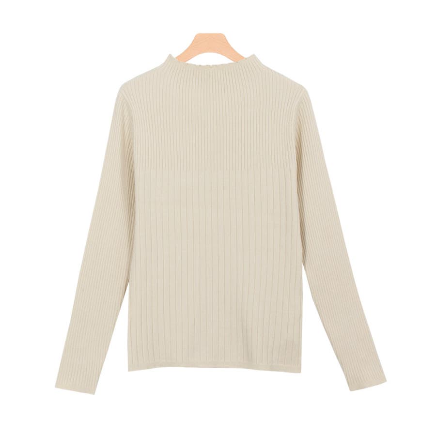 袖口にニットでくるんだ飾りボタンを施し、アクセントをプラスしたデザイン。身頃はリブの太さを切り替え、一枚で着映えるニットトップスです。