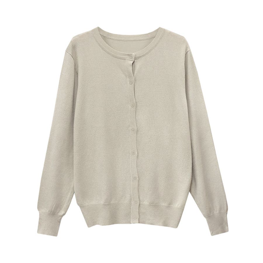 クルーネックシルクタッチウォッシャブルニットカーディガン カーディガン ニット