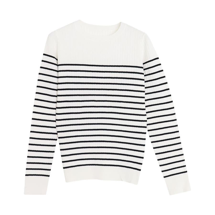 リブ編みで表情を加え、フィットしすぎない程良いゆるさが魅力です。ON/OFF問わず、気分やシーンに合わせた着こなしが楽しめます。