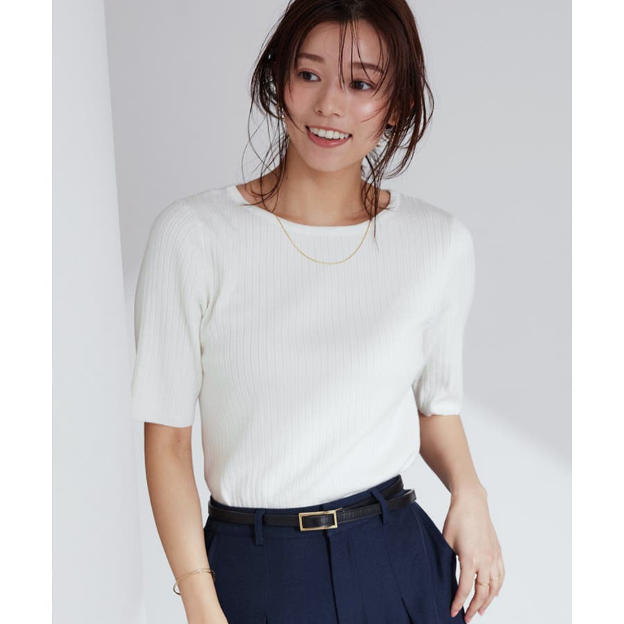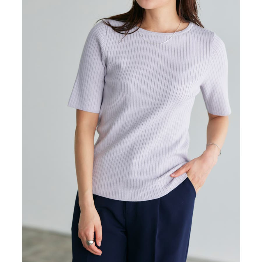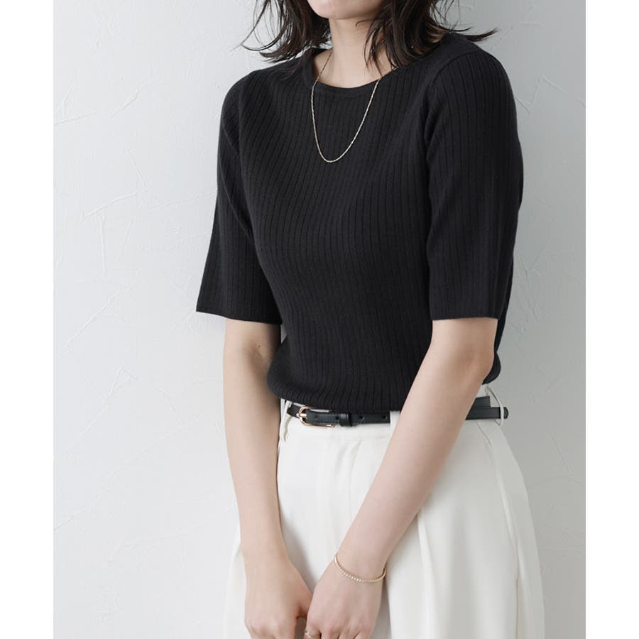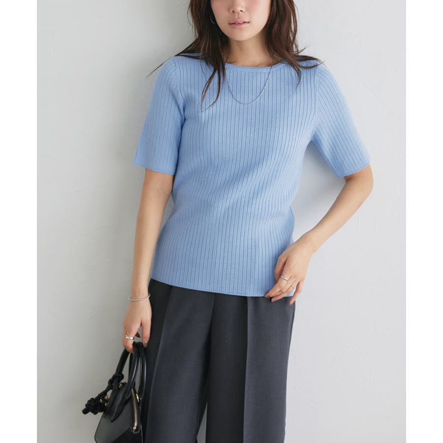 シルクタッチウォッシャブル半袖リブニット ニット リブニット
