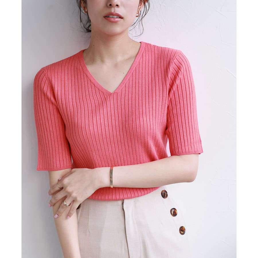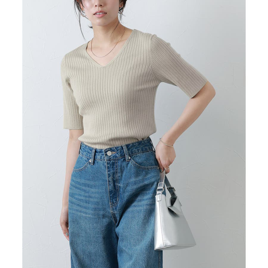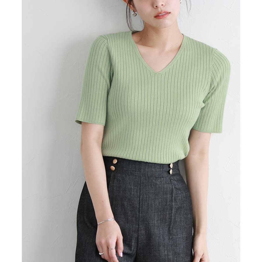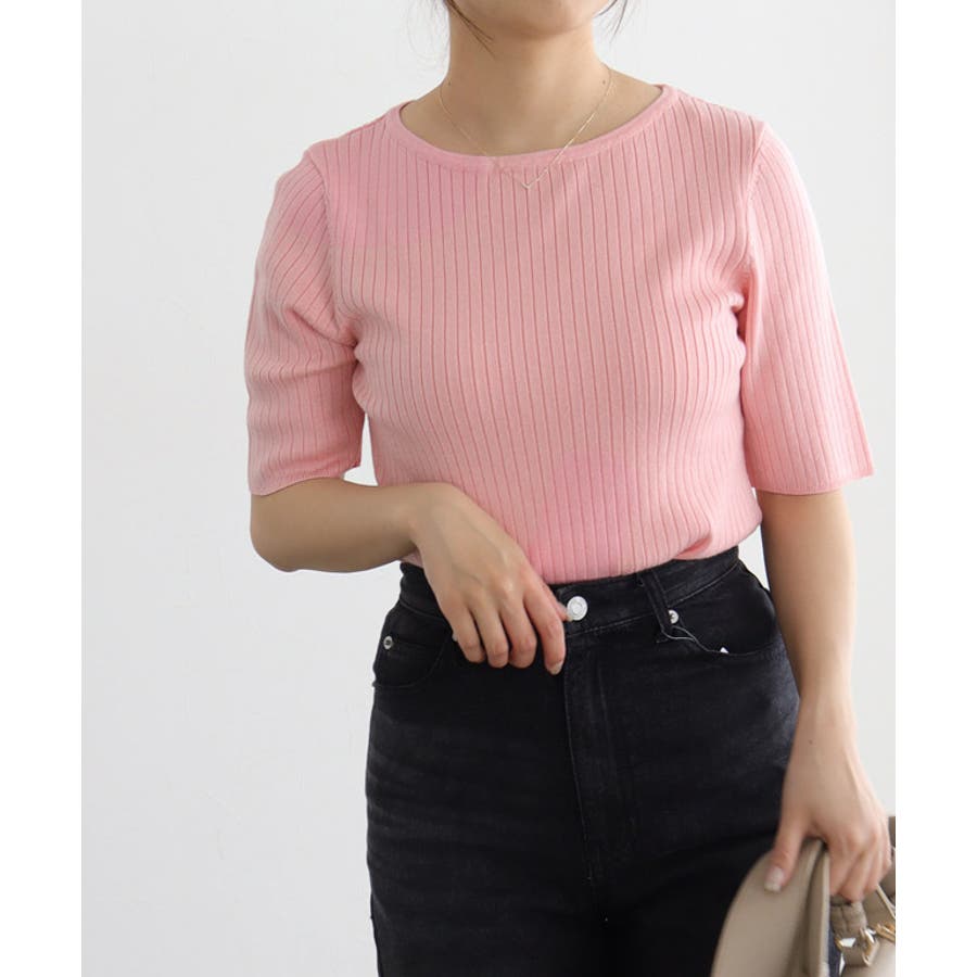 シルクタッチウォッシャブル半袖リブニット ニット リブニット