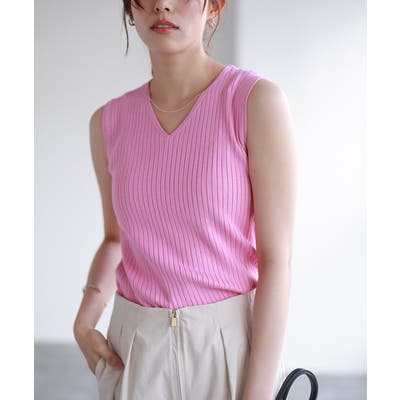 シルクタッチウォッシャブルノースリーブリブニット ニット ノースリーブ
