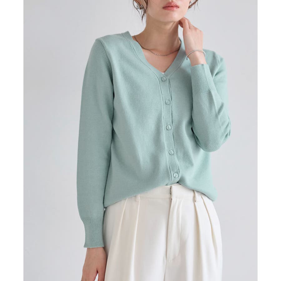 シンプルかつベーシックなデザインでON/OFF問わず合わせやすい一枚。同素材のトップスとカラーを合わせてアンサンブルとしての着用も◎カーディガンとしてはもちろん、一枚でトップスとしても着られるデザインです。