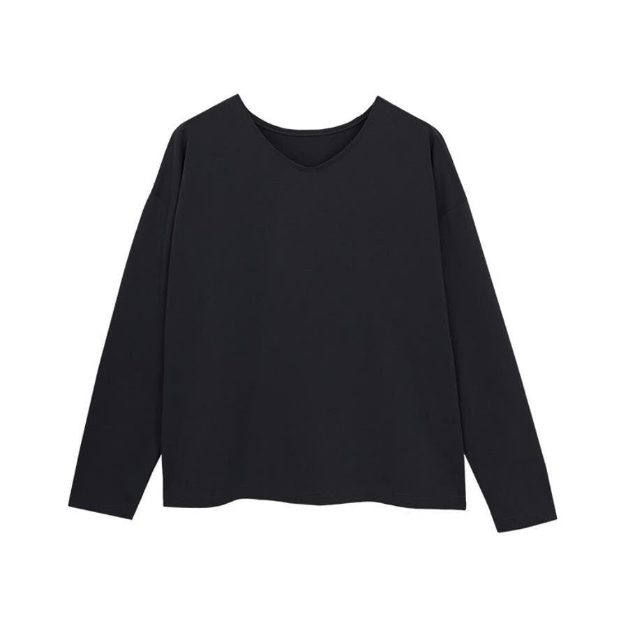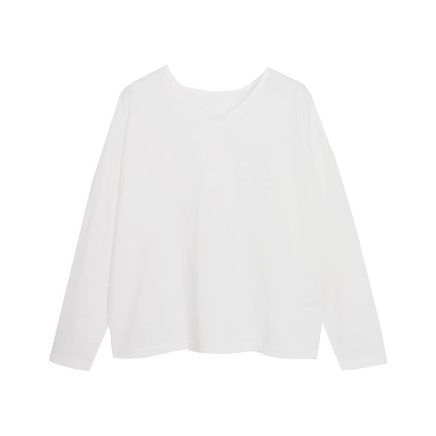 UネックとVネックの前後2wayデザインで気分に合わせて着こなしを変えられます。身幅にゆとりのあるリラクシーなシルエットが楽な着心地です。シンプルなデザインでデイリーな着回しにも活躍する一枚です。