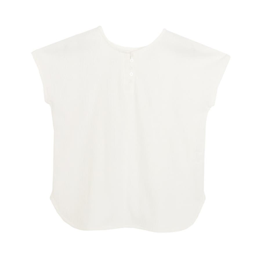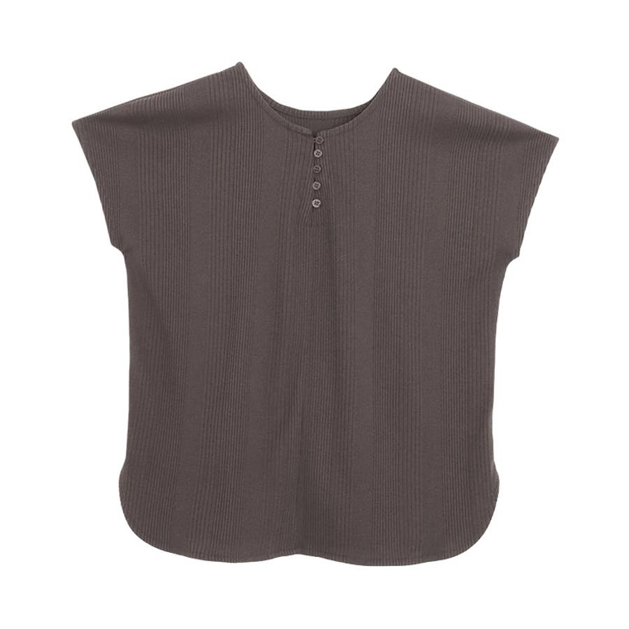 ヘンリーネックの様なデコルテデザインで、アクセントを持たせた一枚。 前後2wayで着用できるのも嬉しいポイントです。 やや長めのフレンチスリーブで、二の腕周りもカバーしてくれます。