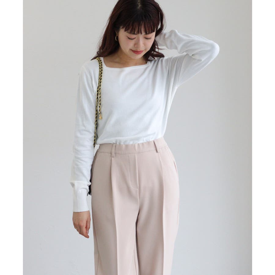 スクエアネックシルクタッチウォッシャブルニット 春 オフィス