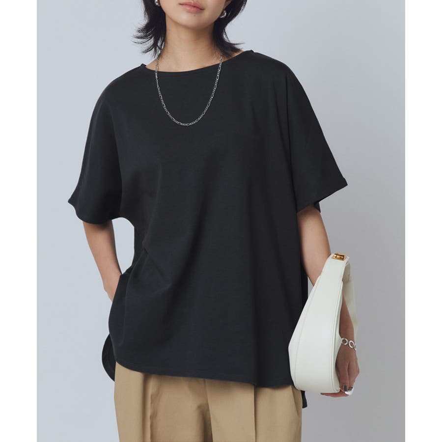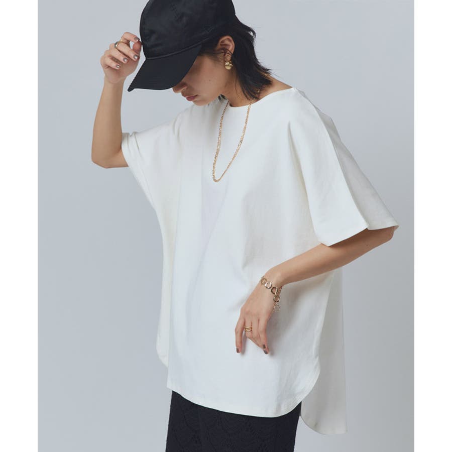 程よい厚みのある素材が立体感のあるシルエットを作り出します。ゆるっとしたオーバーシルエットがリラクシーな雰囲気に。裾のスリットとラウンドカットが抜け感をプラスし、重たなりすぎずアウトスタイルでもサマになるデザインです。
