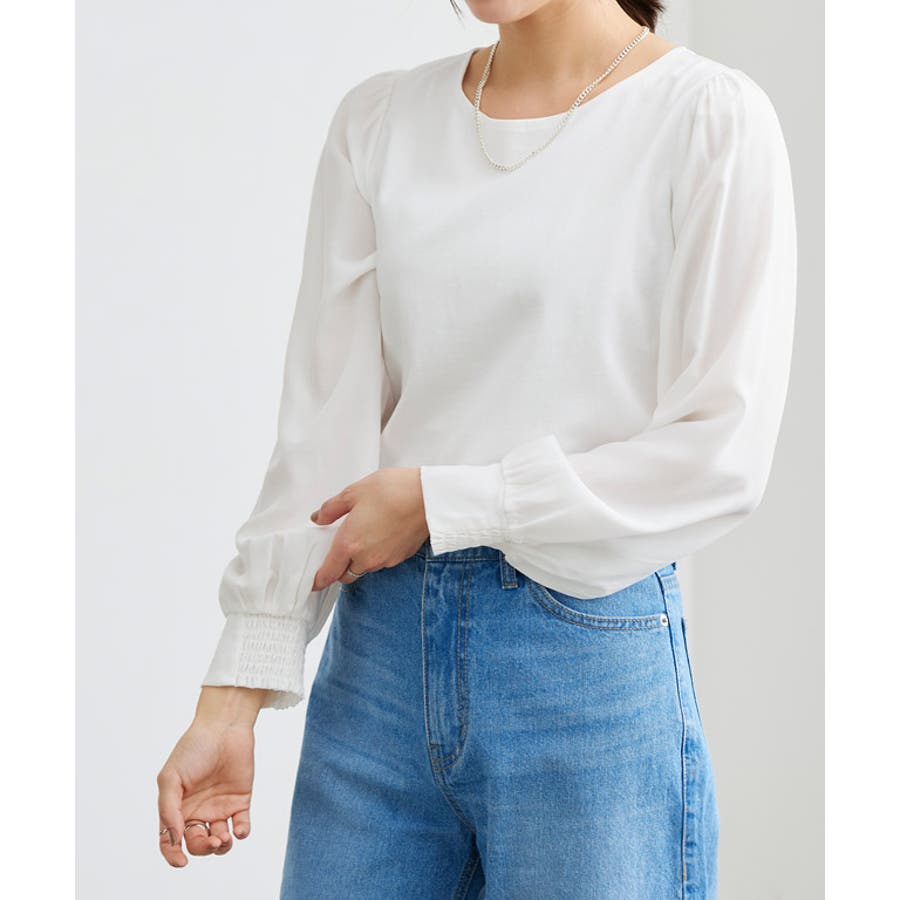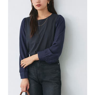 身頃は綿混素材のさらっとしたカットソーが着心地良く、程よいハリ感もあるのできれいなシルエットをキープします。袖は柔らかく落ち感のある薄手の素材で肌触りも◎