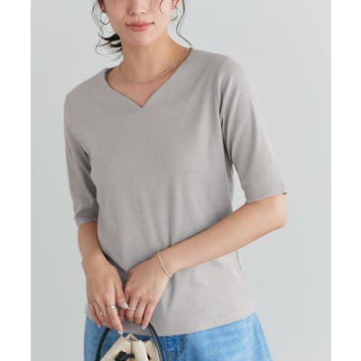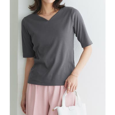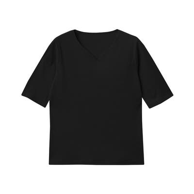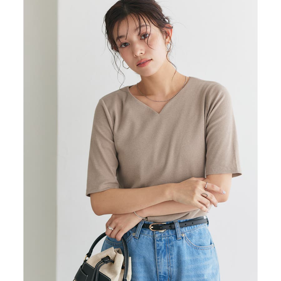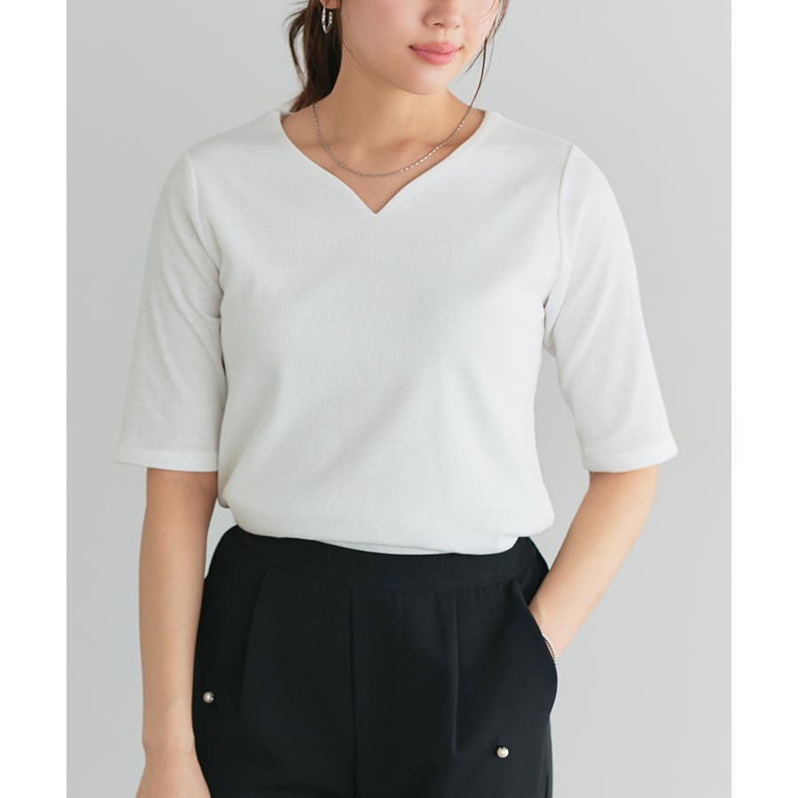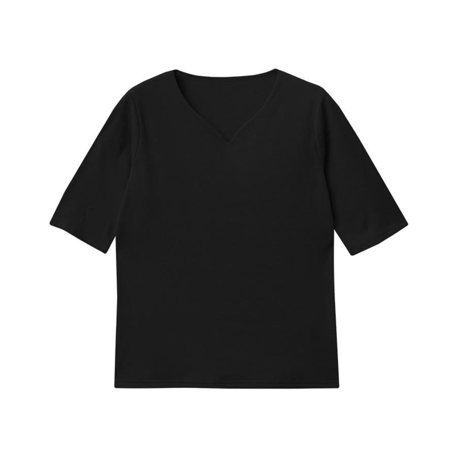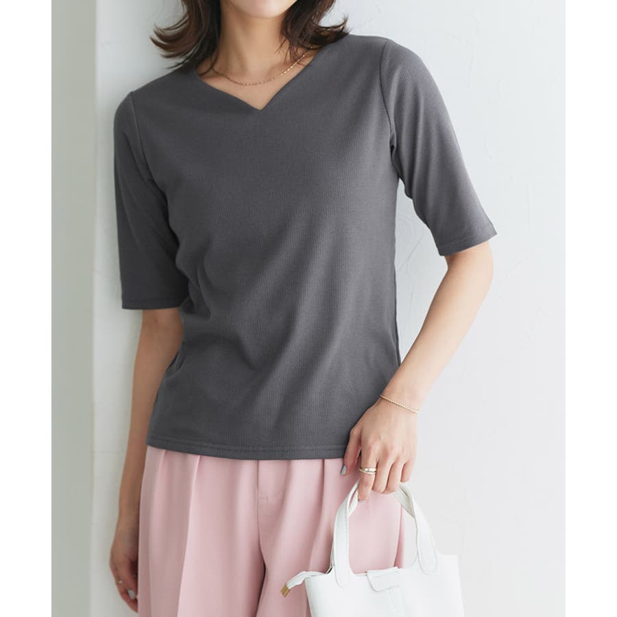 選べるネック5分袖テレコリブカットソー カットソー リブ