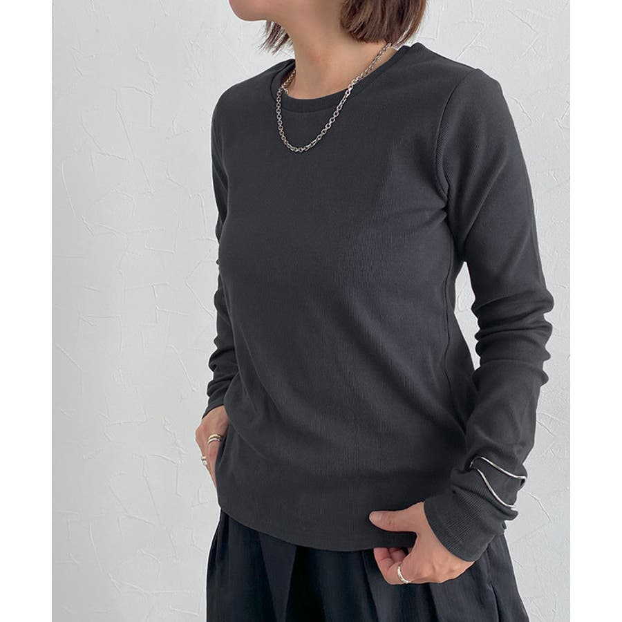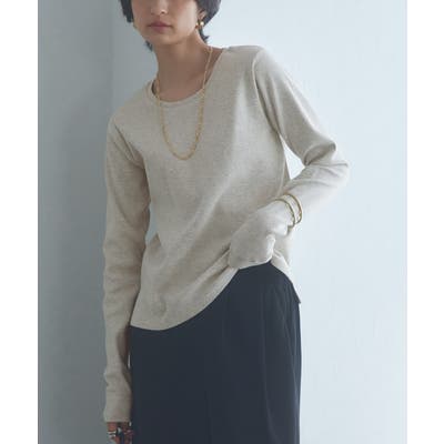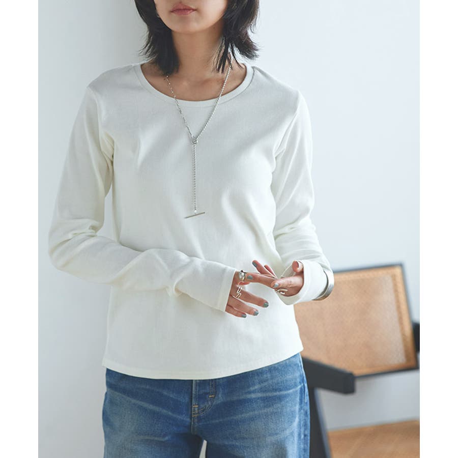 ロングスリーブで自然とクシュっとなり、シンプルなシルエットの中にニュアンス感をプラスします。ベーシックなシルエットとUネックデザインが、どんなスタイリングにも合わせやすく着回しの効く一枚です。