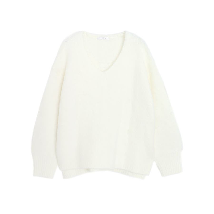 ゆったりとしたワイドシルエットがリラクシーな印象に導くニットトップス。サイドのスリットが抜け感を加えます。ざっくりと開いたVネックがデコルテ周りを綺麗に見せてくれるデザインです。後ろに少し抜いて大人のラフさを演出します。