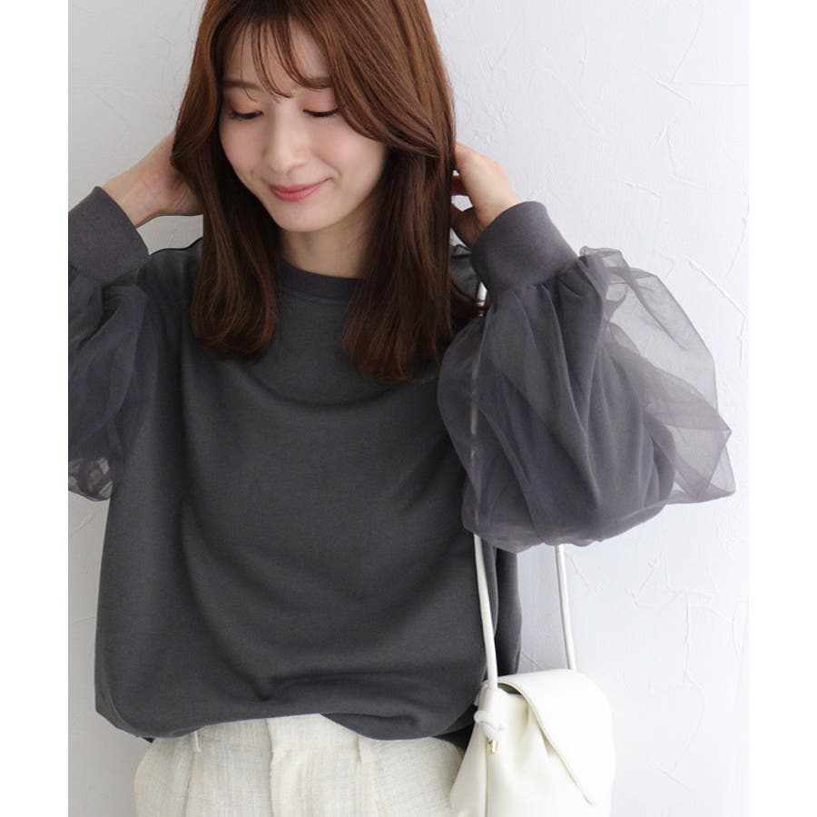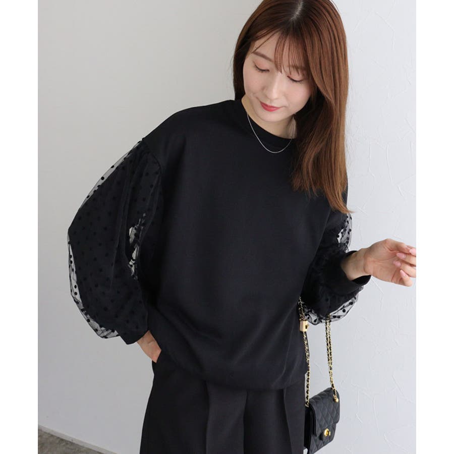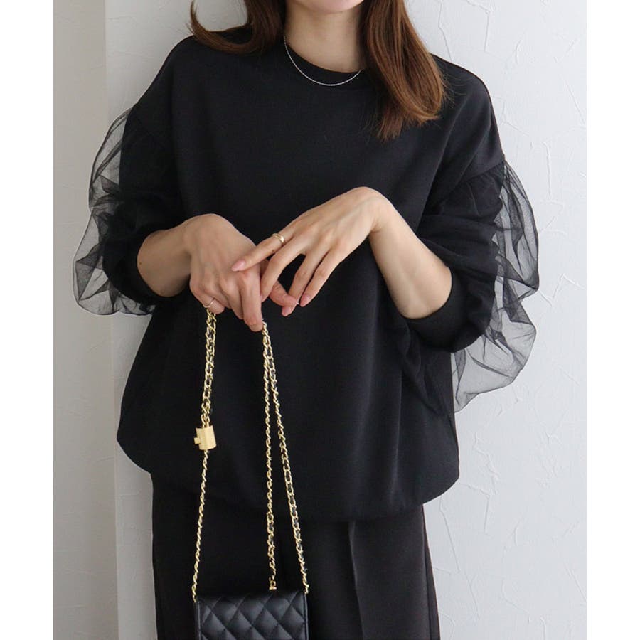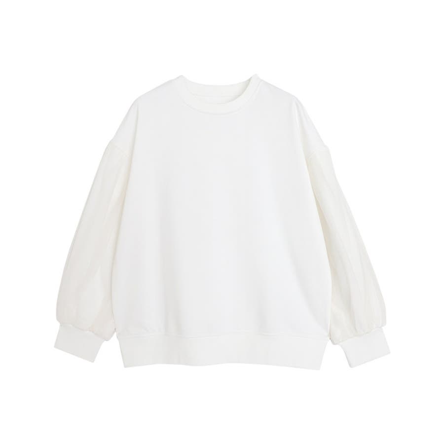 袖部分に華やかなチュールデザインをプラスした一着。本体はスウェット素材で仕上げることで、甘くなりすぎずに程よくカジュアルな印象です。身幅は余裕を持たせながらも、すっきりと着られるシルエットに。首元は詰まりすぎずに、リラクシーさをプラスし、カジュアルなデニムやパンツとスタイリングもオススメです。