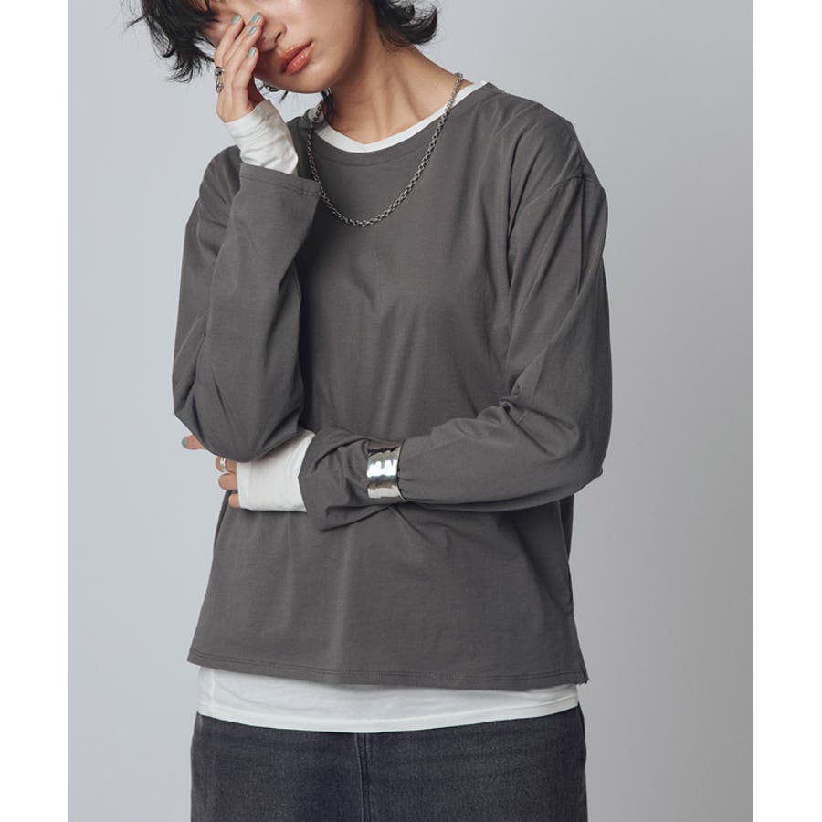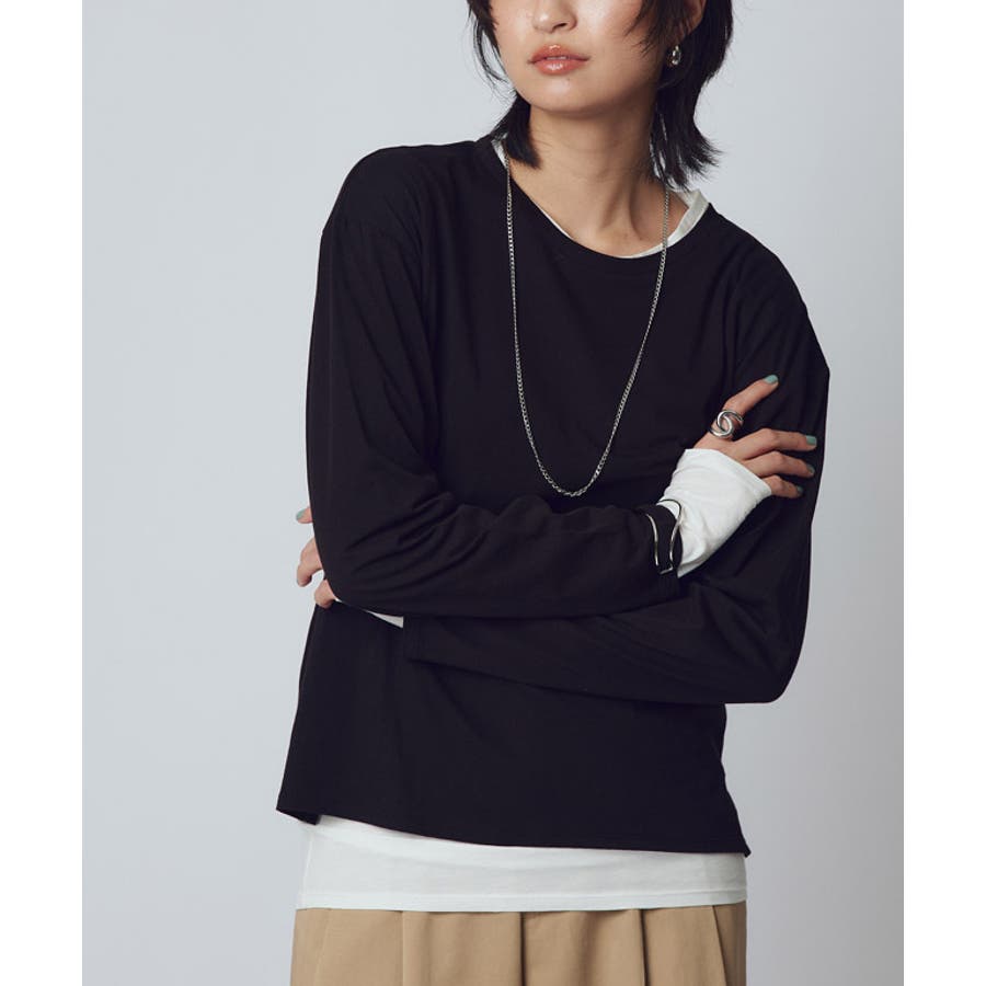 サイズ感の違う二枚のロングTシャツ。二枚を重ねて着るだけで簡単にトレンド感のあるレイヤードスタイルが完成する万能アイテムです。インナーはフィットしたサイズ感と、長めの袖がくしゅっとなりシャツやジャンスカのレイヤードスタイルにも最適な一枚。アウターは程よくゆるさのあるシルエットで一枚で着てもベーシックで着回しやすい一枚です。