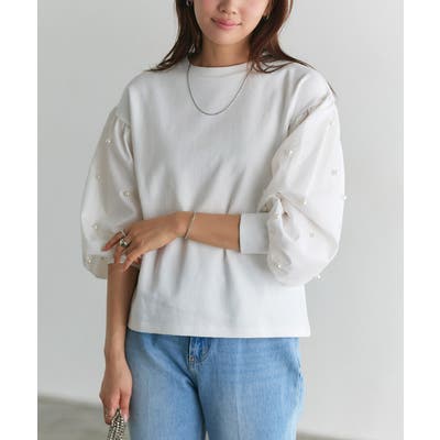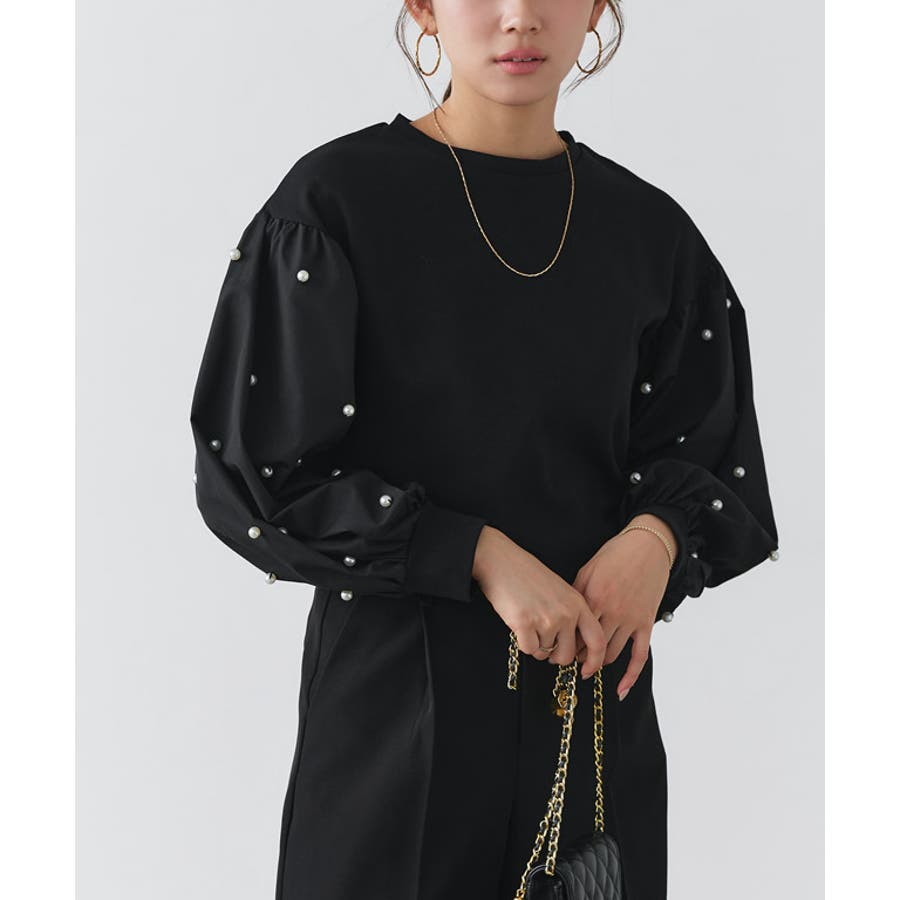 袖に贅沢に施したパールデザインで着映える一枚。身幅は少し余裕を持たせながらもすっきりと着られるシルエットに仕上げました。