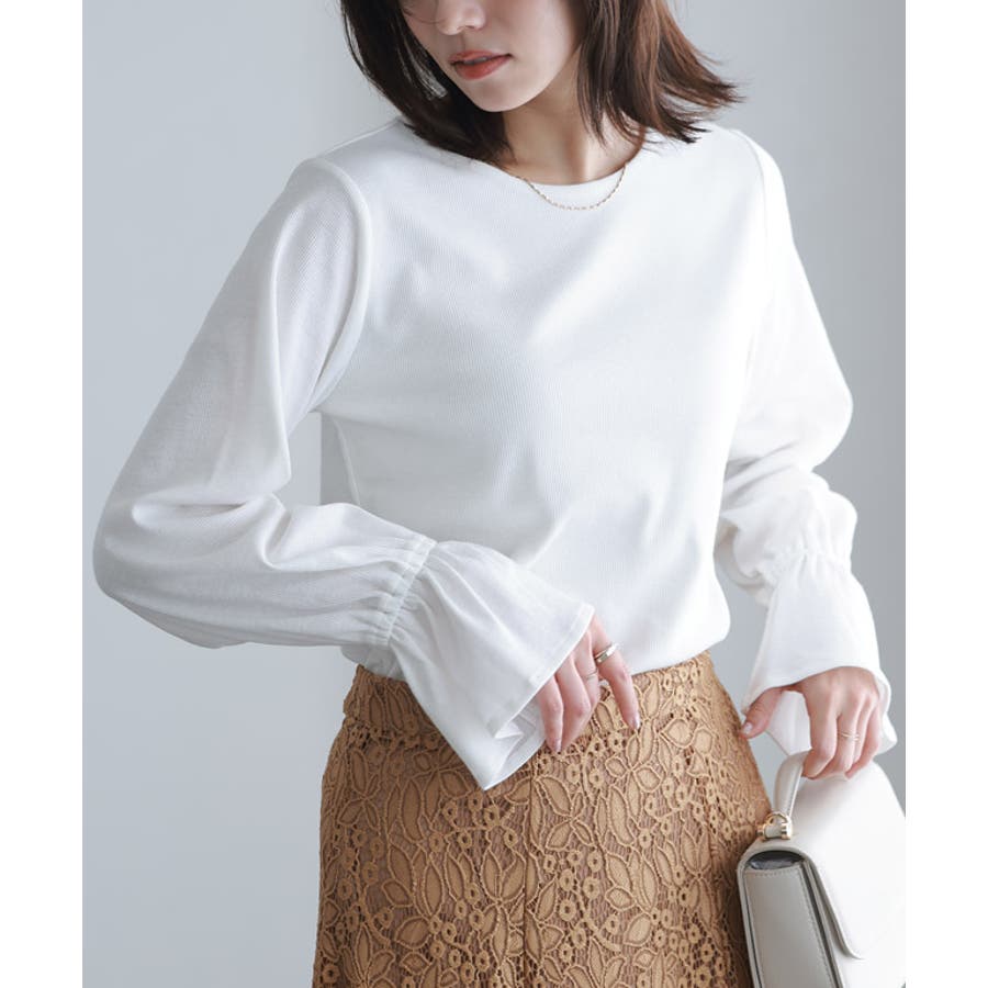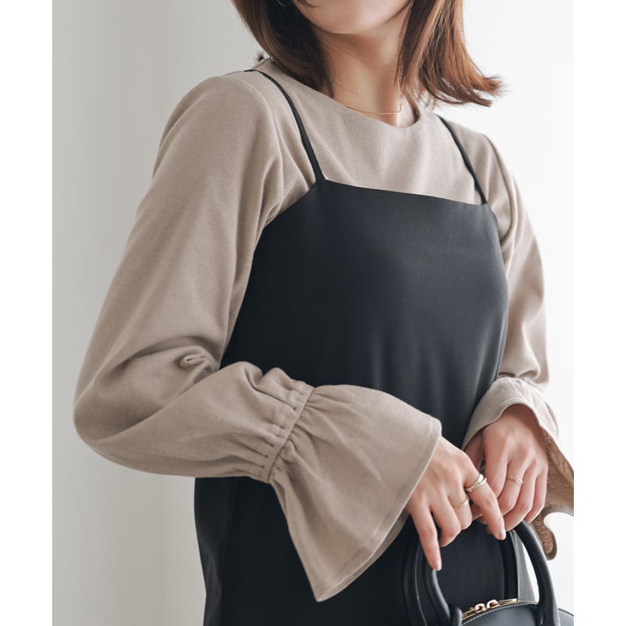 袖口に向かってボリュームを持たせて作るキャンディスリーブが、大人フェミニンなシルエットに。一枚での着用はもちろん、キャミワンピースやジャンスカなどのインナーに着用し、レイヤードで見せるスタイルもオススメです。