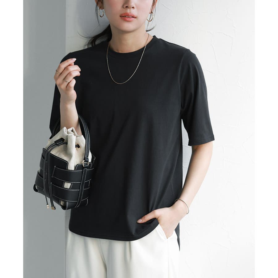 滑らかな表面感がカジュアルながらも上品な印象を与えます。程良くハリがあり綺麗なシルエットを保ち、シワになりにくくお手入れが簡単なところも魅力の一つです。
