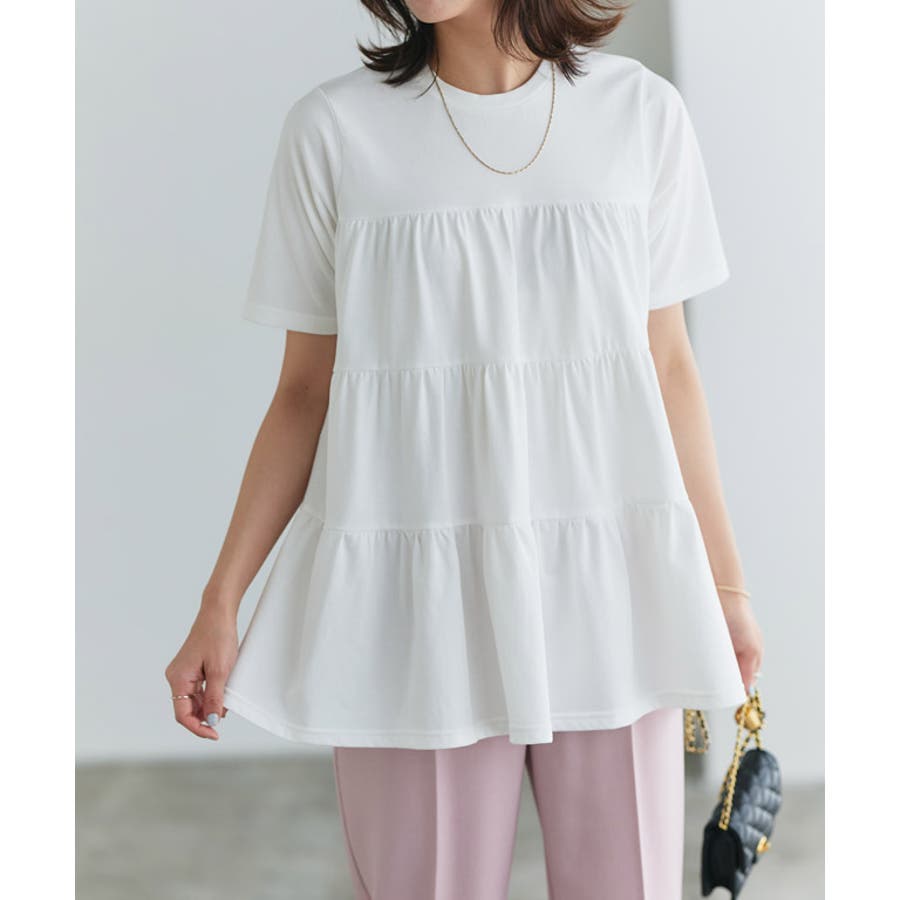 ティアードシルエットが女性らしさ漂い体型カバーも◎いつものパンツに合わせるだけで着映えるアイテムです。