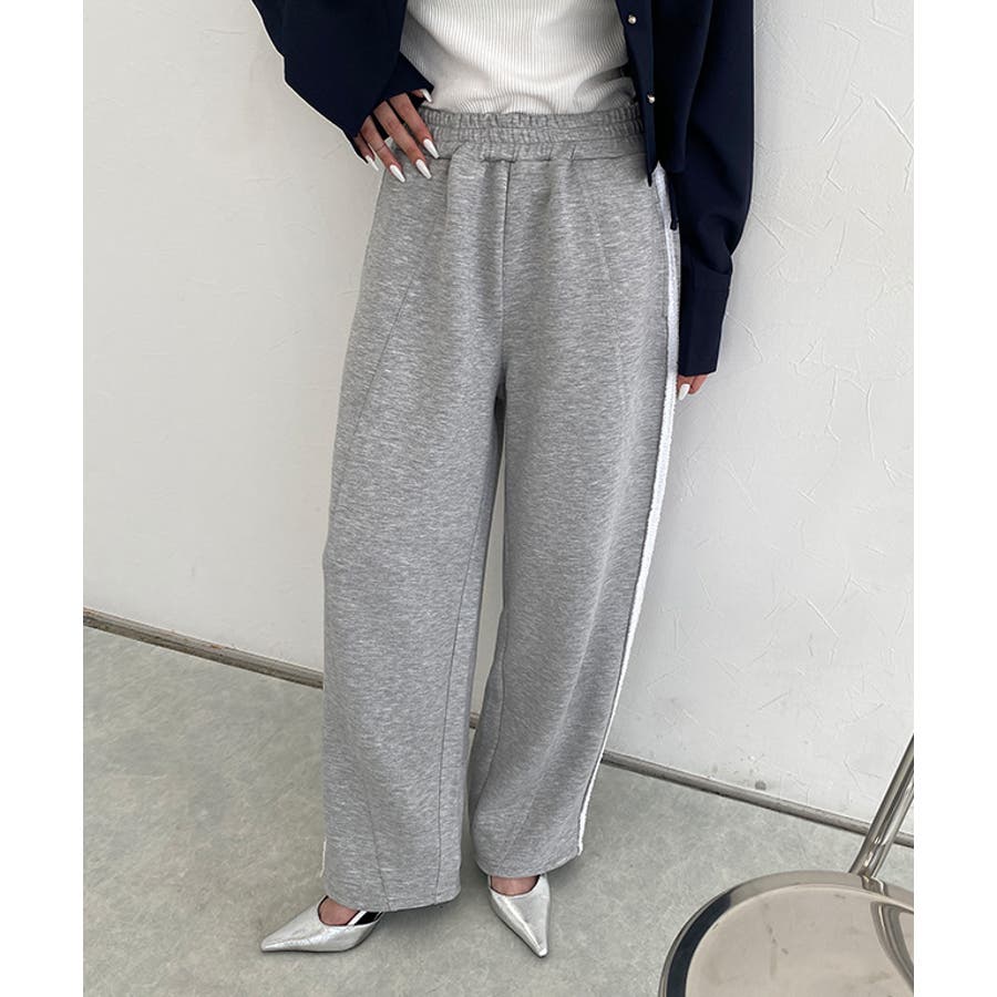 サイドに施されたフリンジラインがトレンド感のあるポンチパンツ。程良いカーブシルエットと切替ラインですっきり脚長効果が期待できる一本。裾はドロスト仕様にすることで2WAYでシルエットを楽しみながらも着丈の調整ができる優秀なアイテム。ウエストは総ゴム仕様でラクな穿き心地も魅力です。