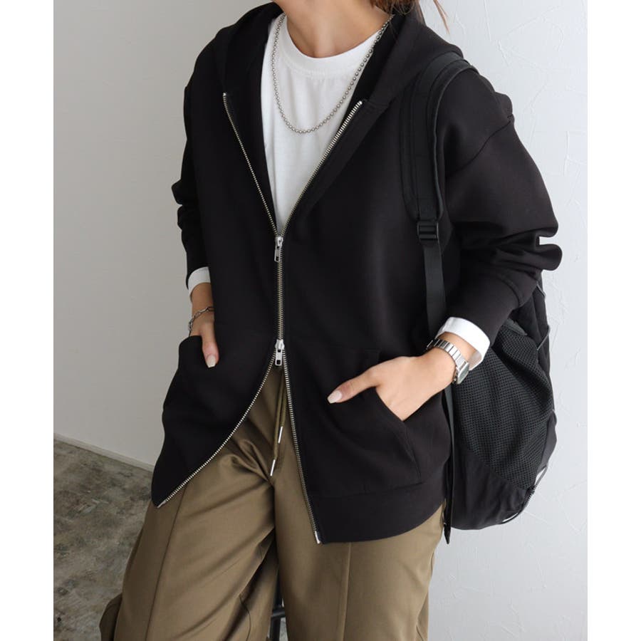 ゆったりとしたオーバーシルエットが今っぽいダブルジップパーカー。大きめのフードがアクセントになり、小顔効果も◎YKK製のダブルジップなので、開け方次第で抜け感やシルエットのアレンジが可能です。着回しやすく、デイリーに活躍する頼れる一枚です。