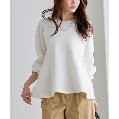 【Atype】切り替えで表現したティアードが、甘すぎず女性らしいアクセントに。気になる腰まわりをさりげなくカバーしてくれるのも嬉しいポイントです。【Btype】ギャザー切り替えのペプラムシルエットが、よりフェミニンな印象に。七分袖で季節の変わり目にも取り入れやすい一枚です。