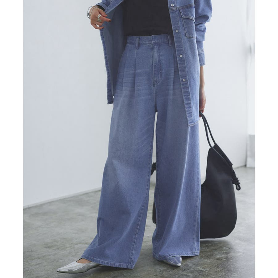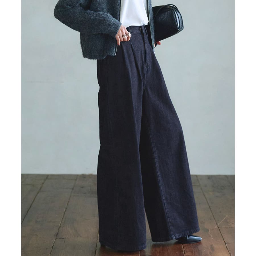 トレンドライクなワイドデザインで大人シルエットを演出。ウエスト部分にはタックを施し、表情をプラスします。フロントはボタンが見えないホック仕様ですっきりと仕上げました。