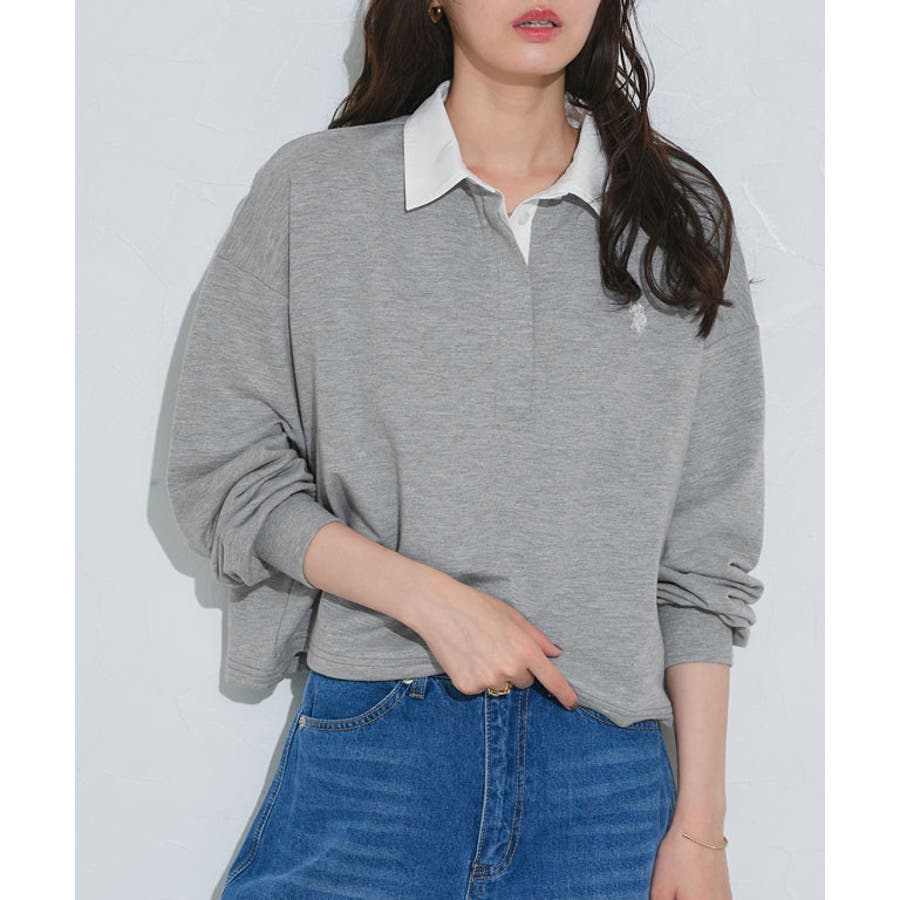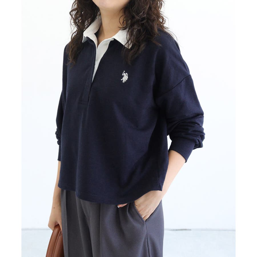 身頃はミニ裏毛で襟と前立てを布帛で切り替え、トレンドのラガーディテールに仕上げたトップス。カジュアルになりすぎず、こなれた雰囲気へと導きます。胸元の【U.S.POLO ASSN.】刺繍がスタイリングに程良いアクセントをプラスしてくれ、少し短めの丈感がボトムスを選ばず、合わせやすい一枚に仕上げました〇