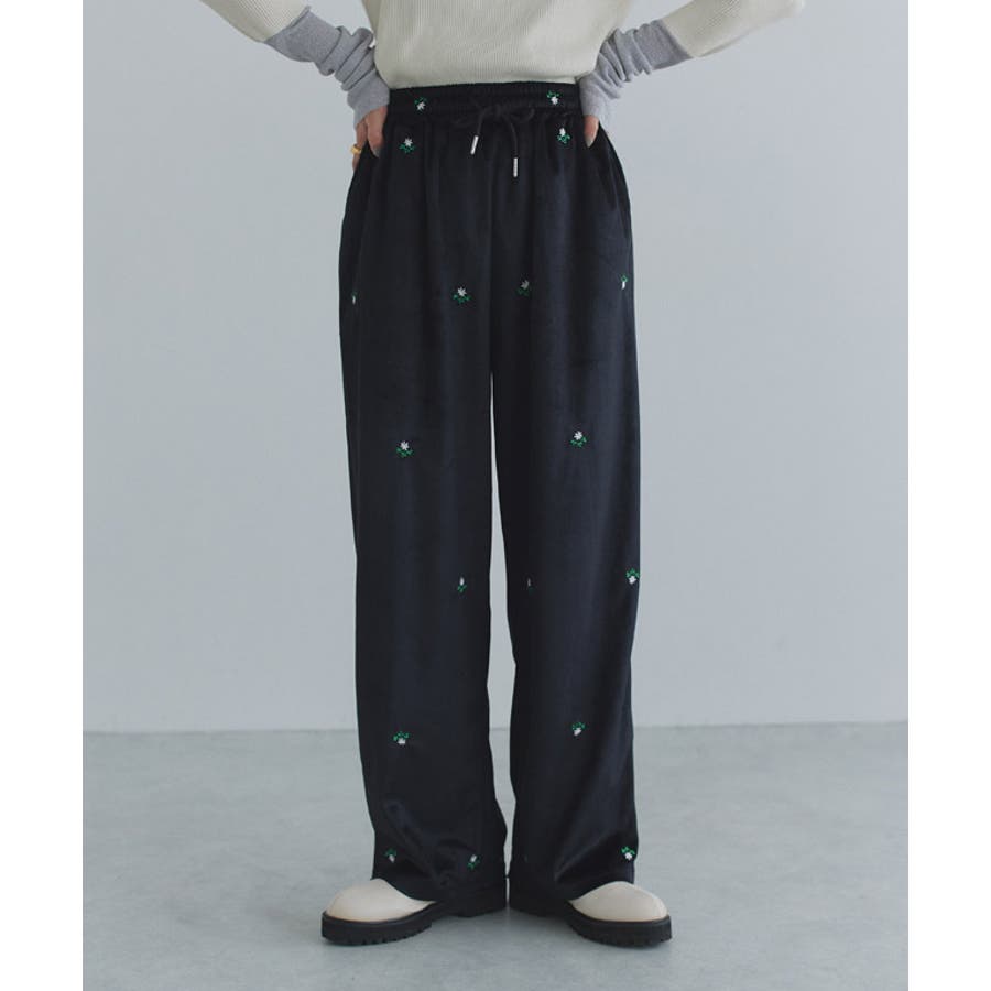 [ECLAM] フラワー刺繍ベロアワイドパンツ パンツ