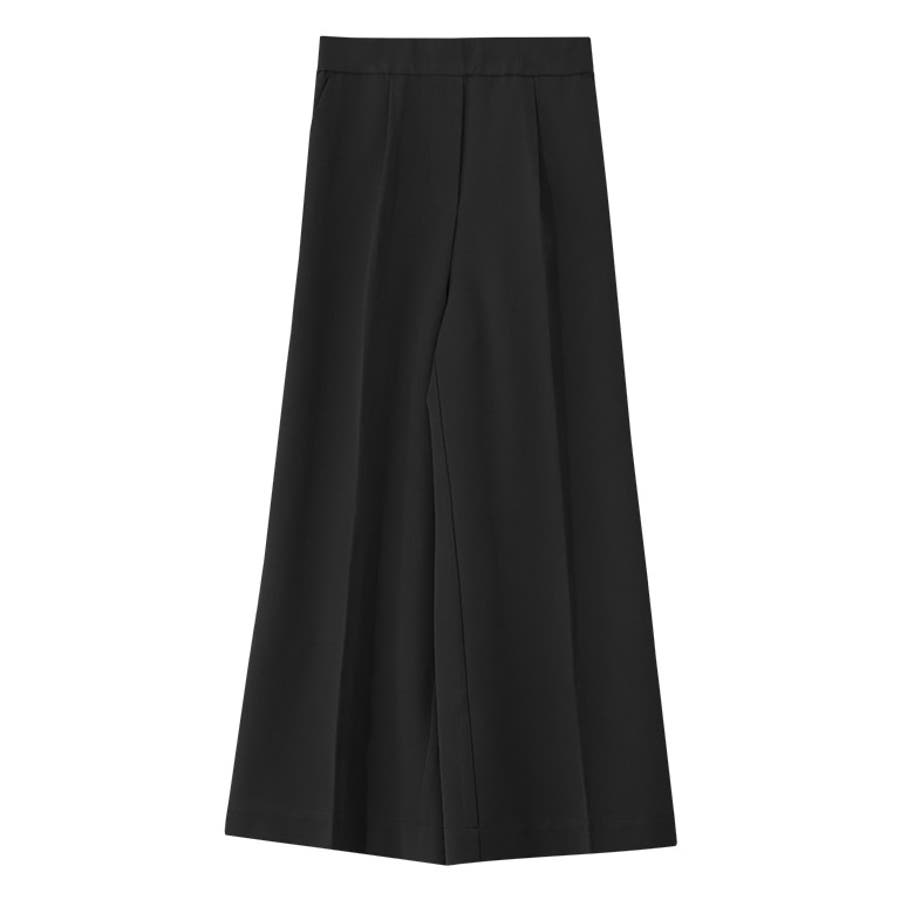 高見えワイドパンツ 美脚 ワイドパンツ 高見え レーヨン混 ワイド