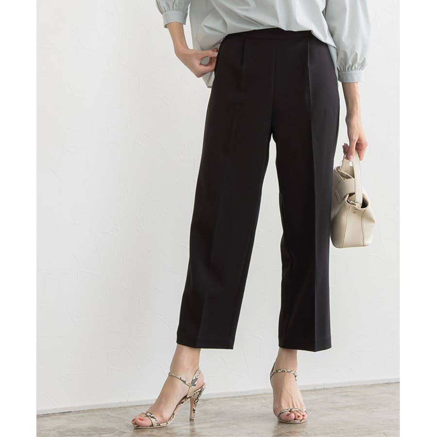 センタープレスとウエストのタックデザインがスタイルアップを叶えてくれて、すっきりとした印象に◎すとんと落ちるボックスシルエットが上品見えし体型を拾わないのでリラックスした穿き心地です。シンプルなディテールにすることでどんなアイテムともマッチしワードローブに取り入れたくなります◎