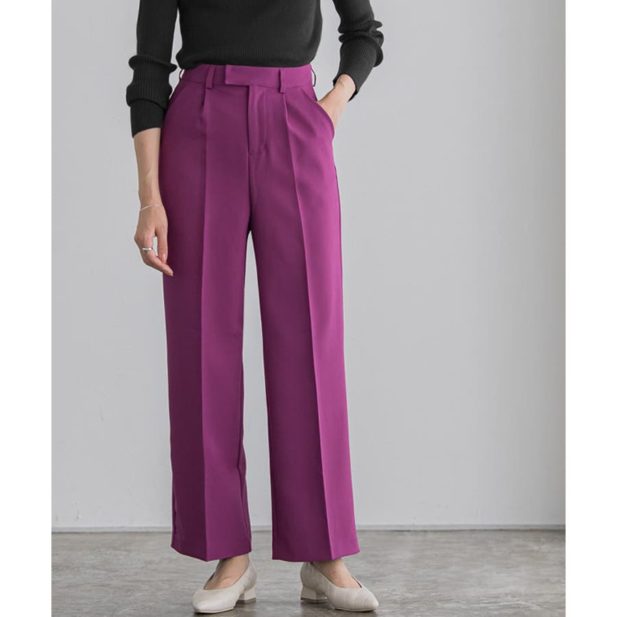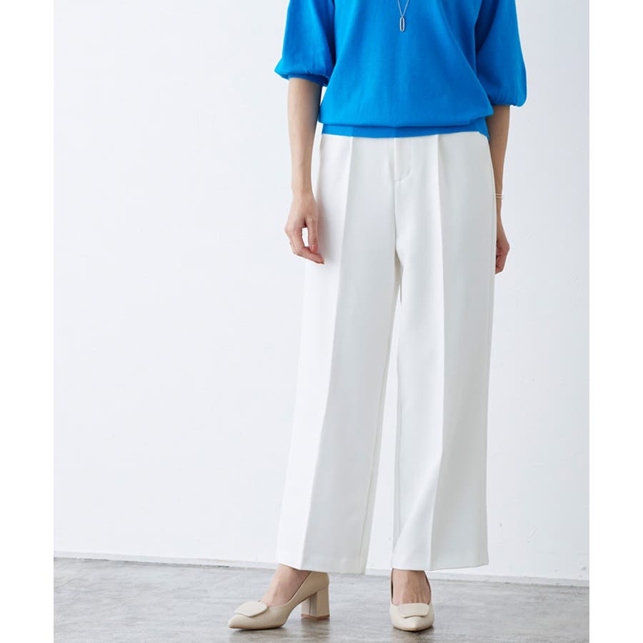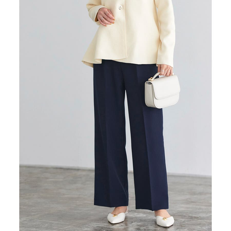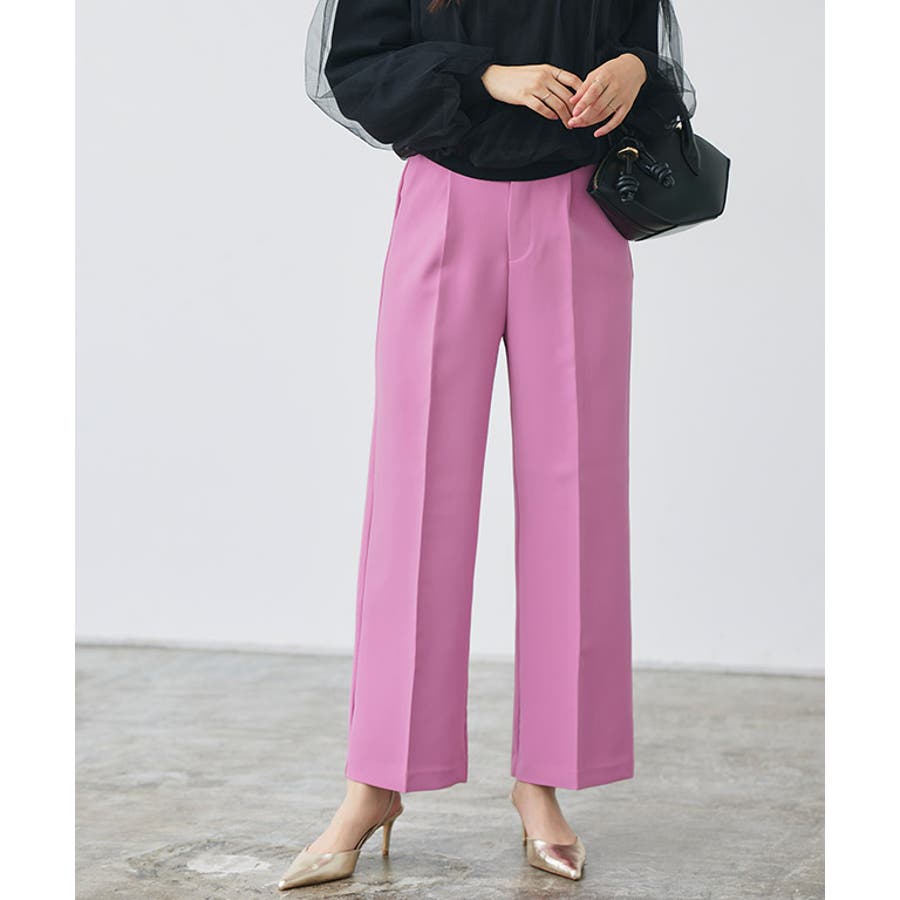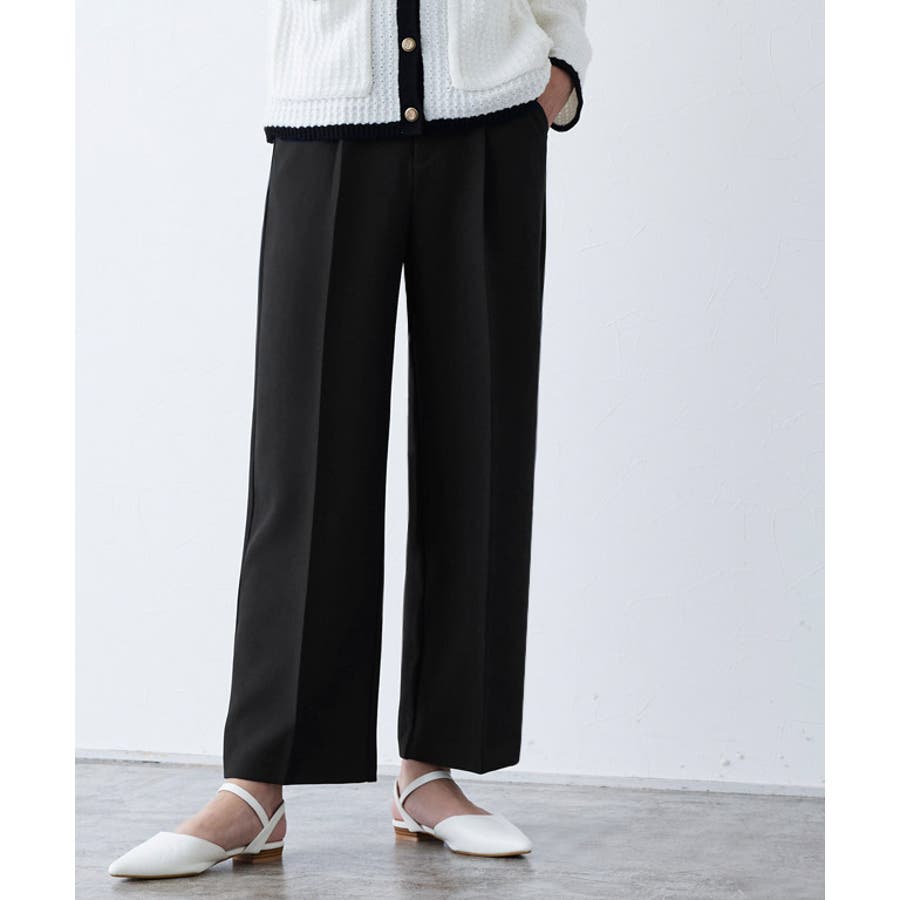 すとんと落ちるストレートシルエットが上品さ漂う一枚。センタープレスによってスタイルアップが叶い、すっきりとした印象に仕上がります。