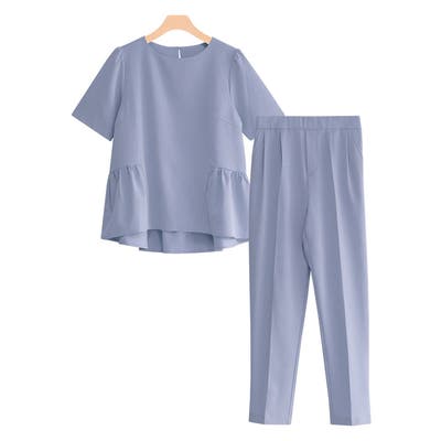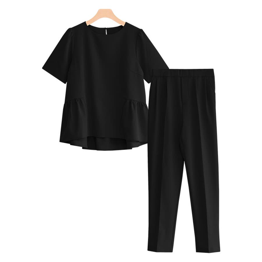 サイドから後ろに広がるフリル切り替えがフェミニンなセットアップ。トップスにデザインがあるのでシンプルなトラウザーパンツとの相性抜群◎セットアップとしての着用はもちろん、単品でもお楽しみいただけます。