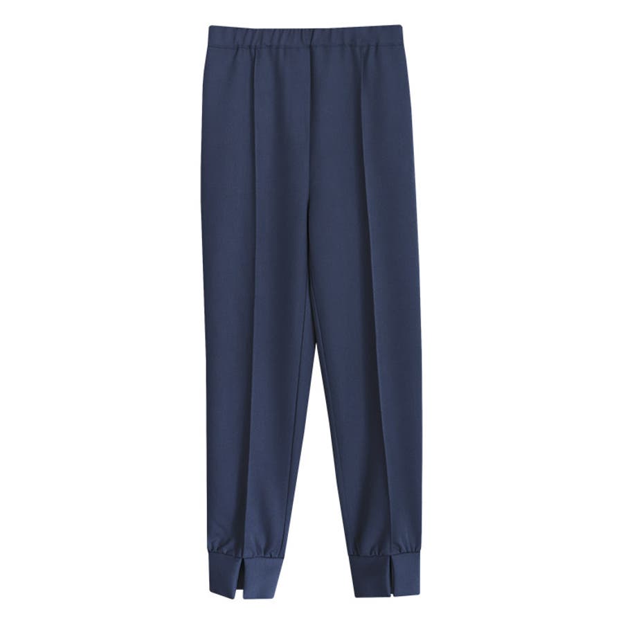 センタープレスと裾リブのスリットが、大人の上品さを演出してくれる一着。ウエストは後ろウエストをゴムにすることで程よいフィット感と楽な着脱が可能です。