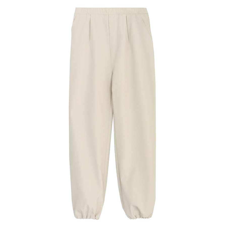 裾を絞らなければストレートシルエットで、きちんと見えを叶えるデザイン。裾のコードを絞るとシルエットを変えることができ、スタイリングを楽しむことができます。絞った際にコードが裾から出ない仕様もこだわりポイントの一つです。ON/OFFのスタイリングが楽しめます。